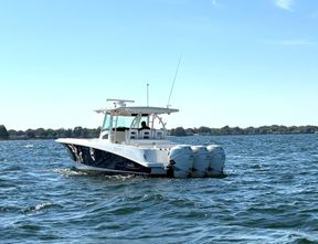 $597,900Drive Up2.08 ftLength Overall35.5 ftNominal Length35.5 ftEngine Horse Power900 hpDry Weight13,600 lbFuel Tank Capacity385|gallonWater Tank Capacity45|gallonBeam10.83 ftEngine Hours390Fuel Tank Count1Water Tank Count1Engine Count3Meet the bold 220 Dauntless, a center console boat that combines inshore fishing excellence with offshore cruising confidence. More than ... READ MORE