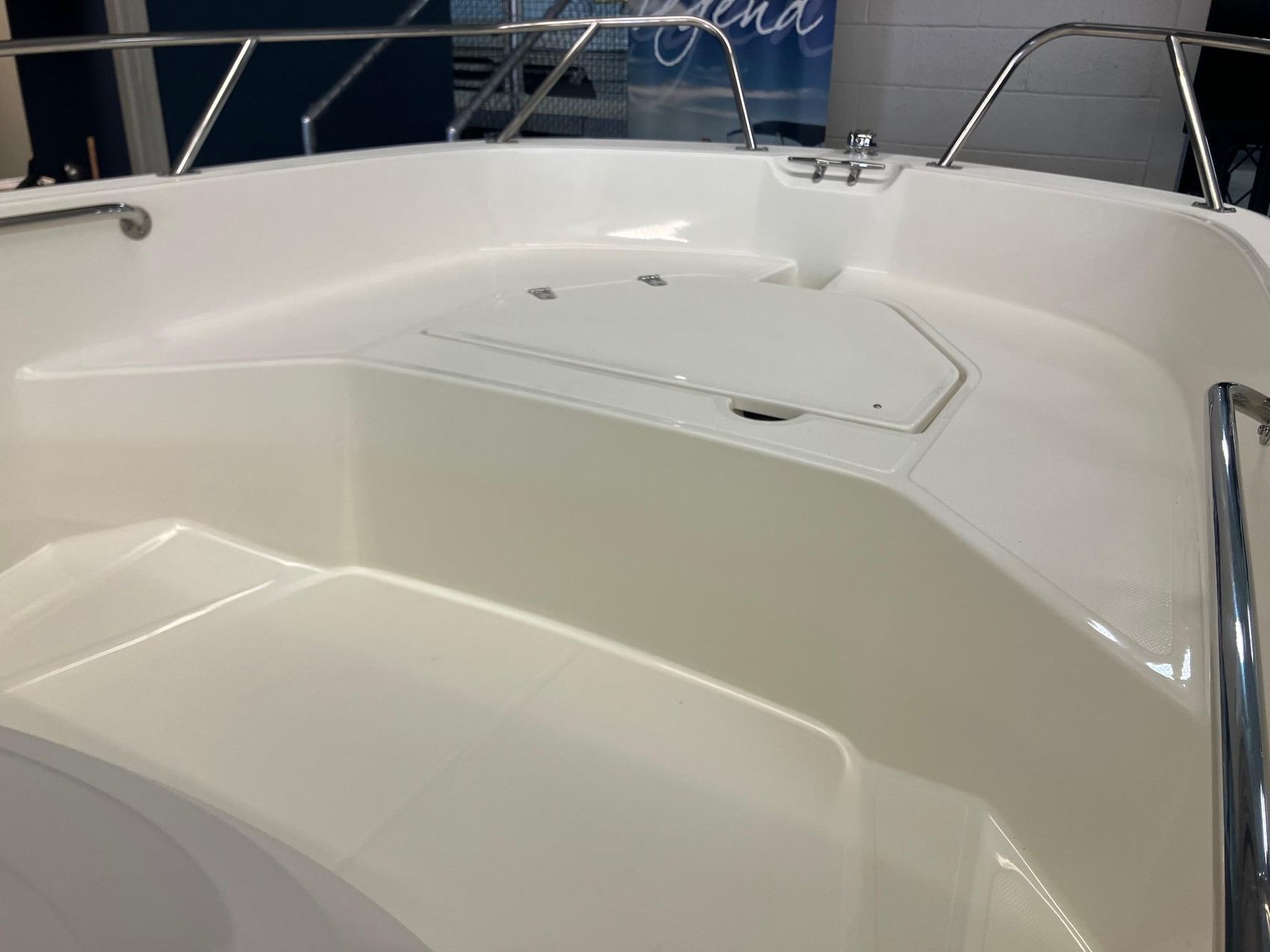 - Bow locker with fiberglass cover and overboard drain