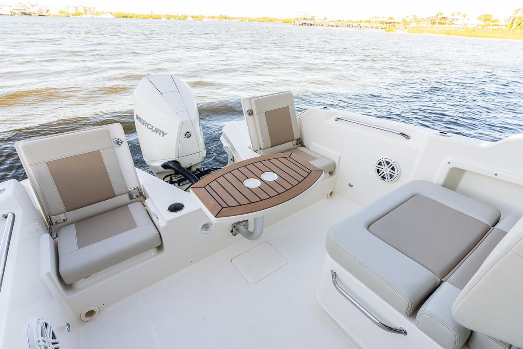 - Stainless cup holders for aft seats (2)