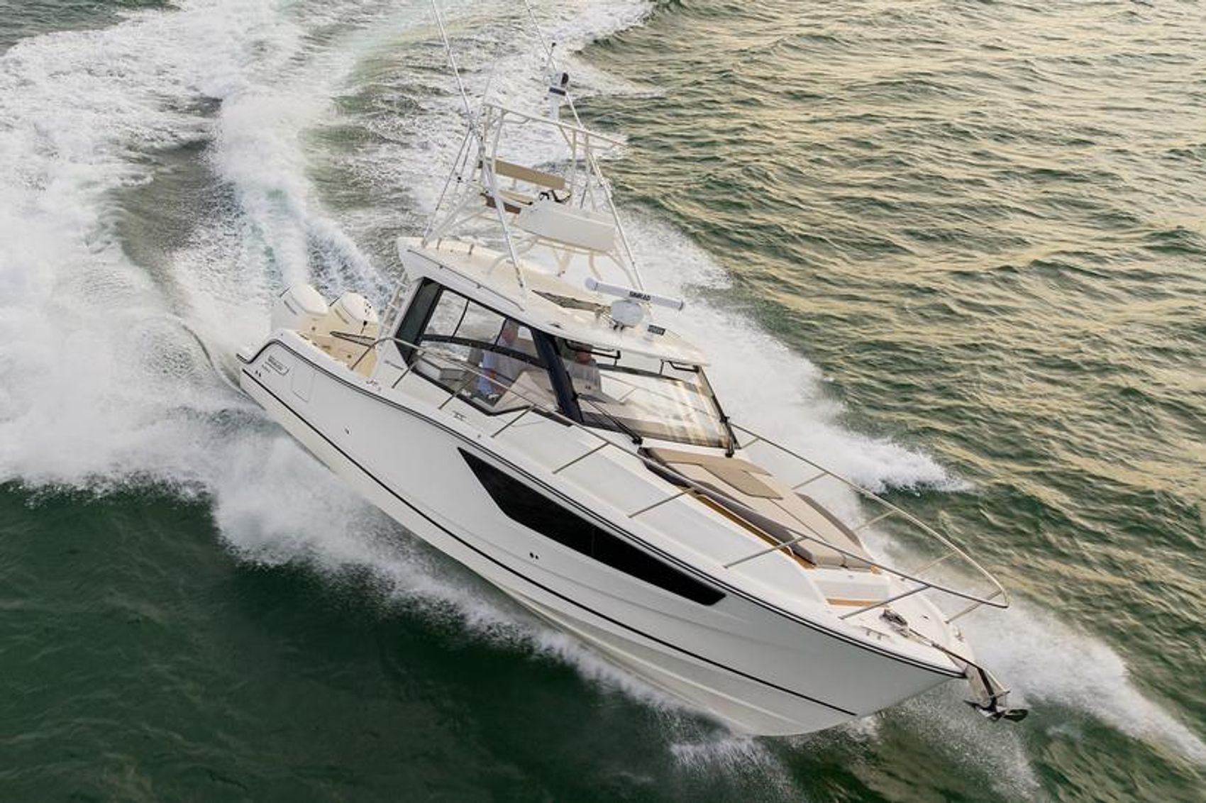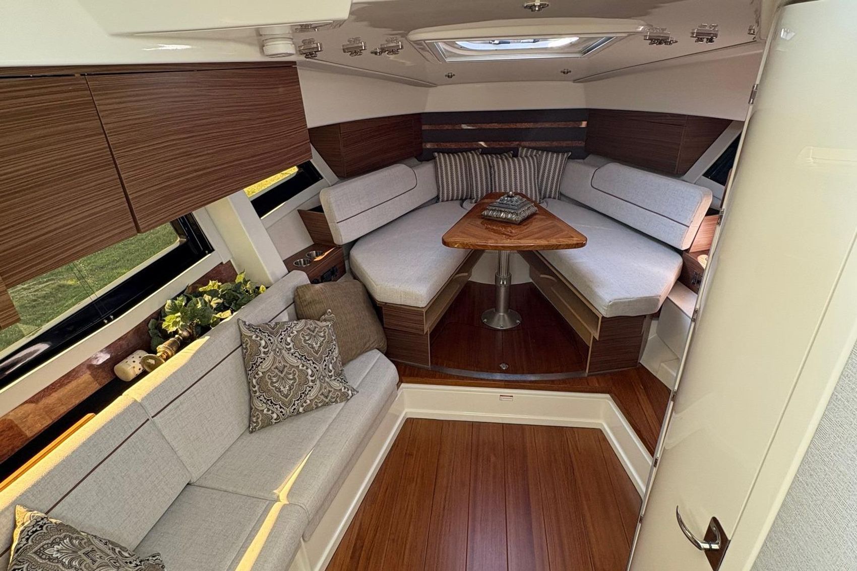 - 16,000 BTU AC unit with 2 helm vents, wet bar area vent, and discharge from hardtop to port helm deck