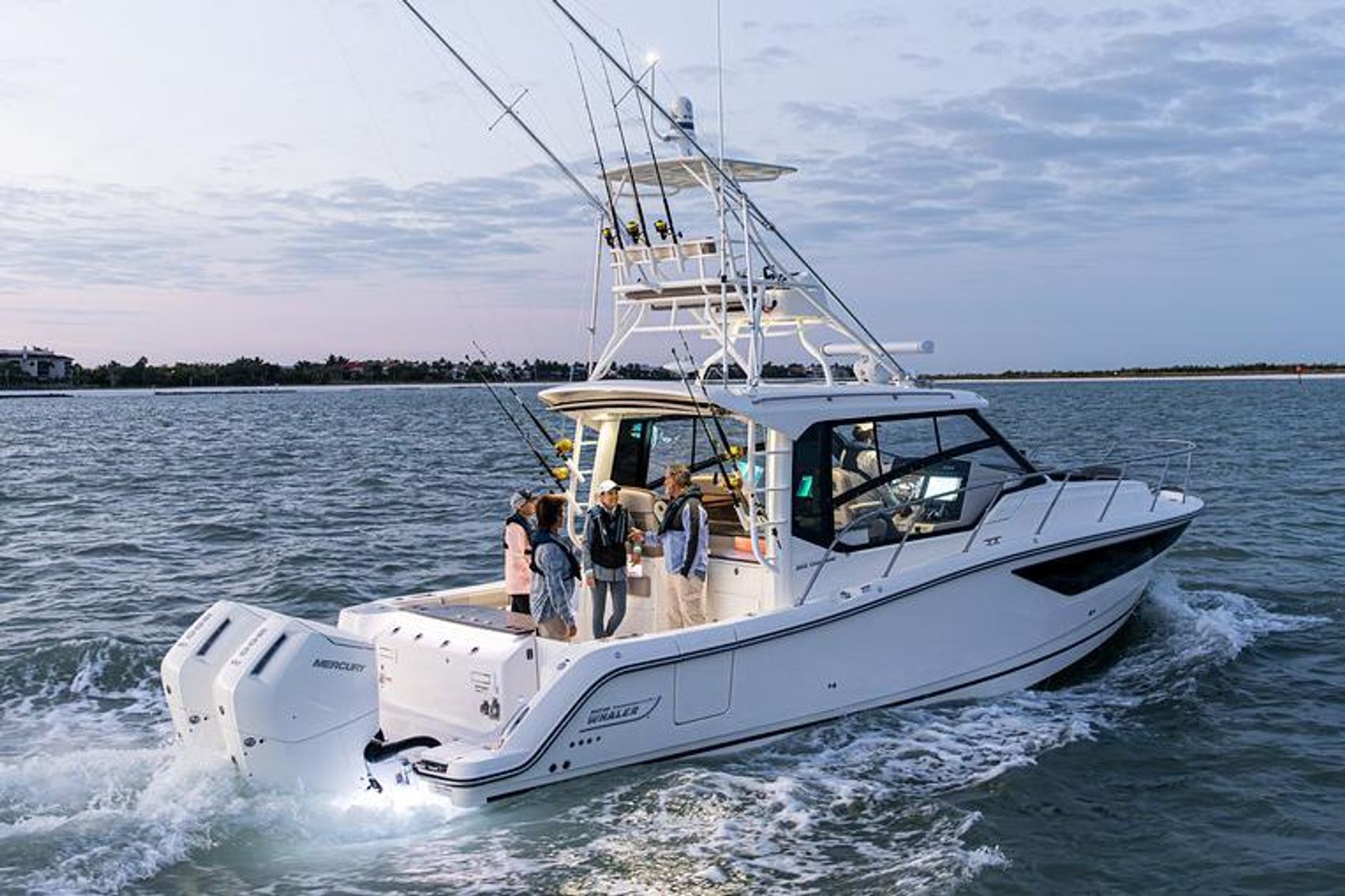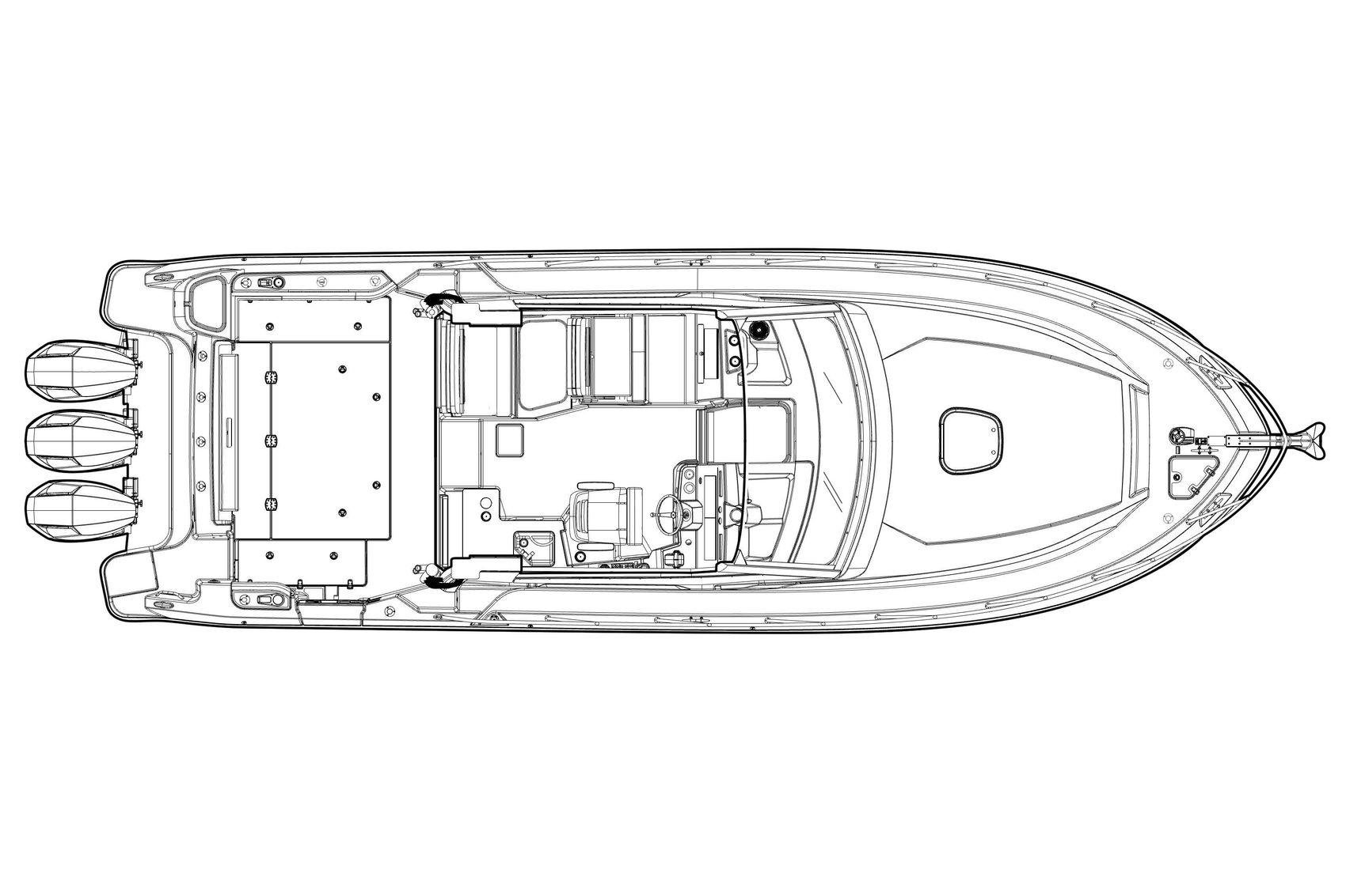 - Mercury DTS dual binnacle controls with integrated Auto Drive Trim, push button start/stop controls