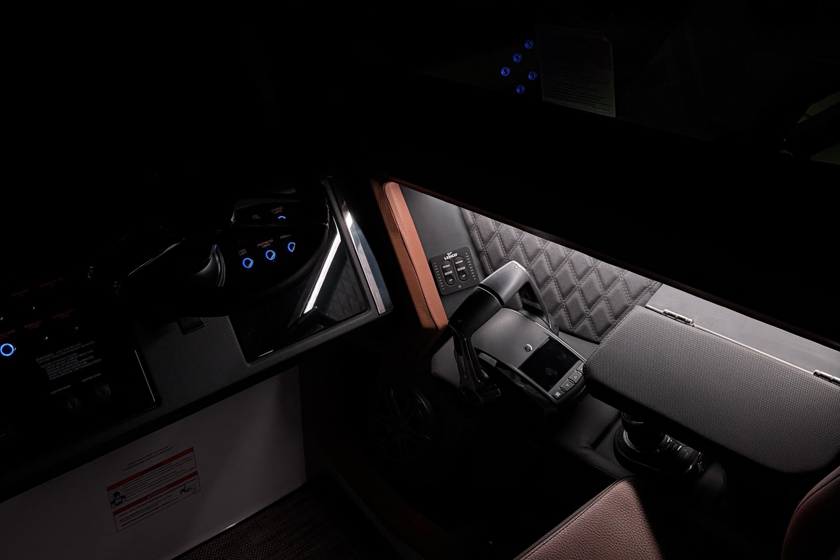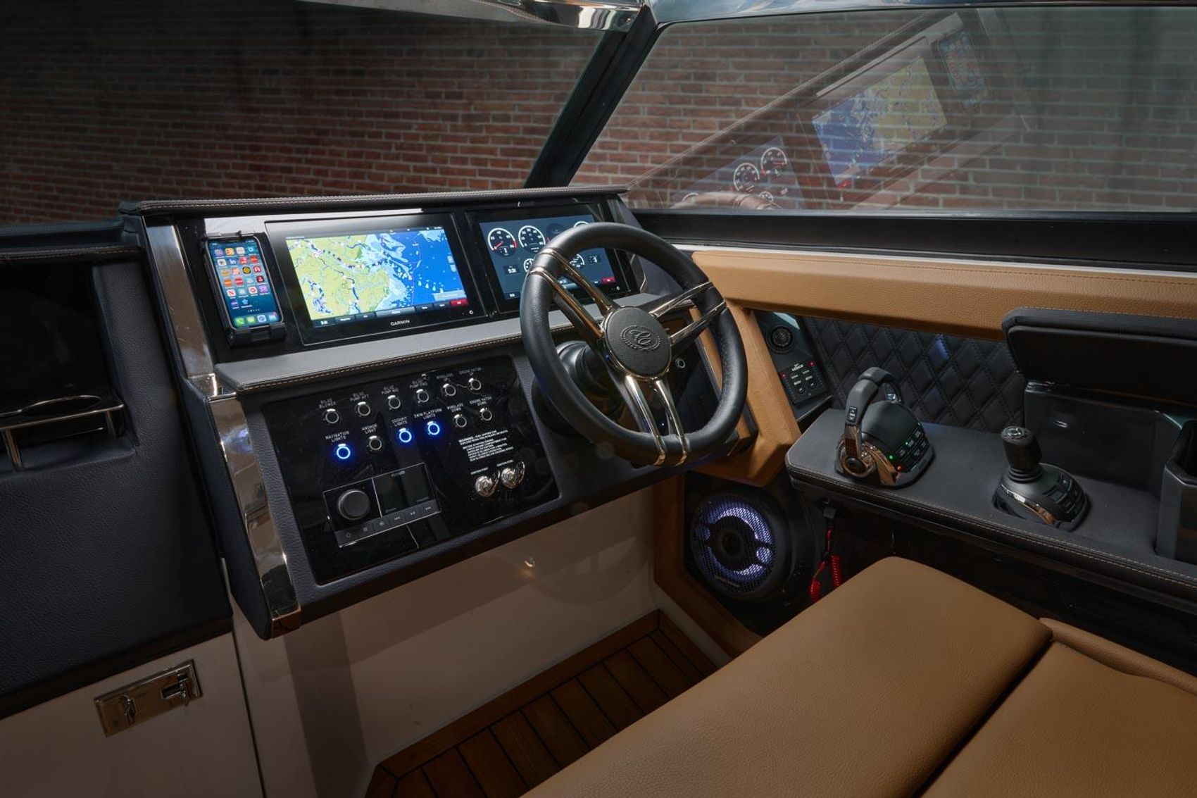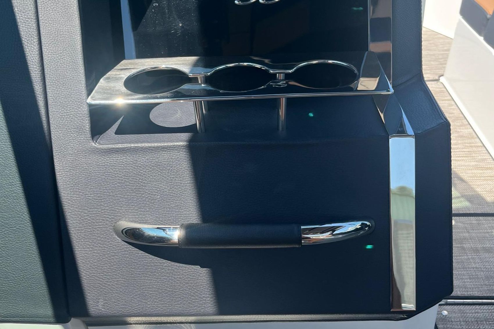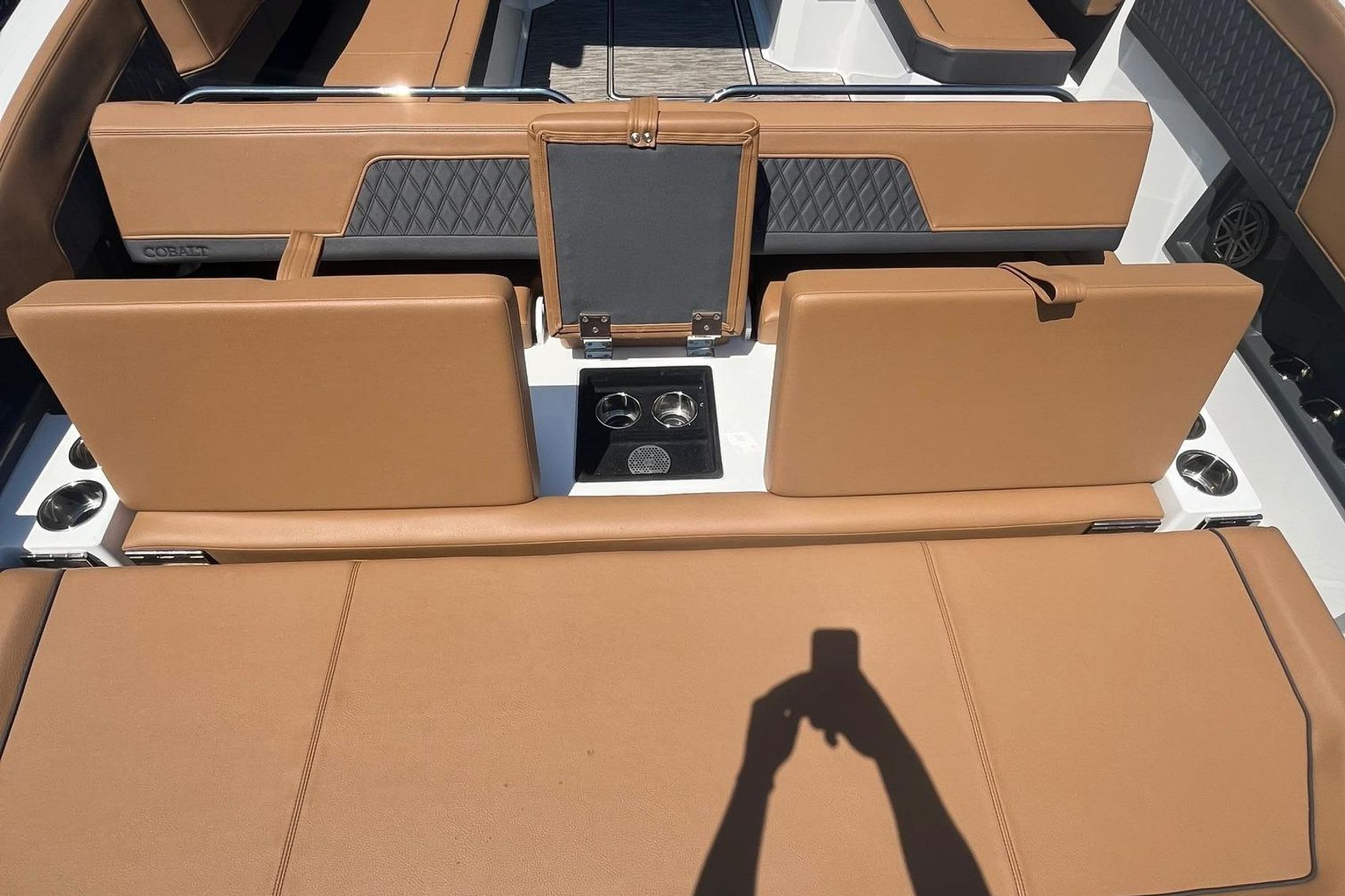 The Cobalt R33 combines classic styling with innovative geometry, giving it a commanding presence on the water. Stainless steel accents add elegance, and the hydraulic swim platform with a patented mechanical Swim Step offers effortless access to the water. Inside, you’ll find finely tailored upholstery, modern amenities, and an ergonomic helm with dual Garmin Glass Cockpit touchscreens. Whether staying in the bay or running several miles offshore, make the Cobalt R33 a part of your journeys all summer long.