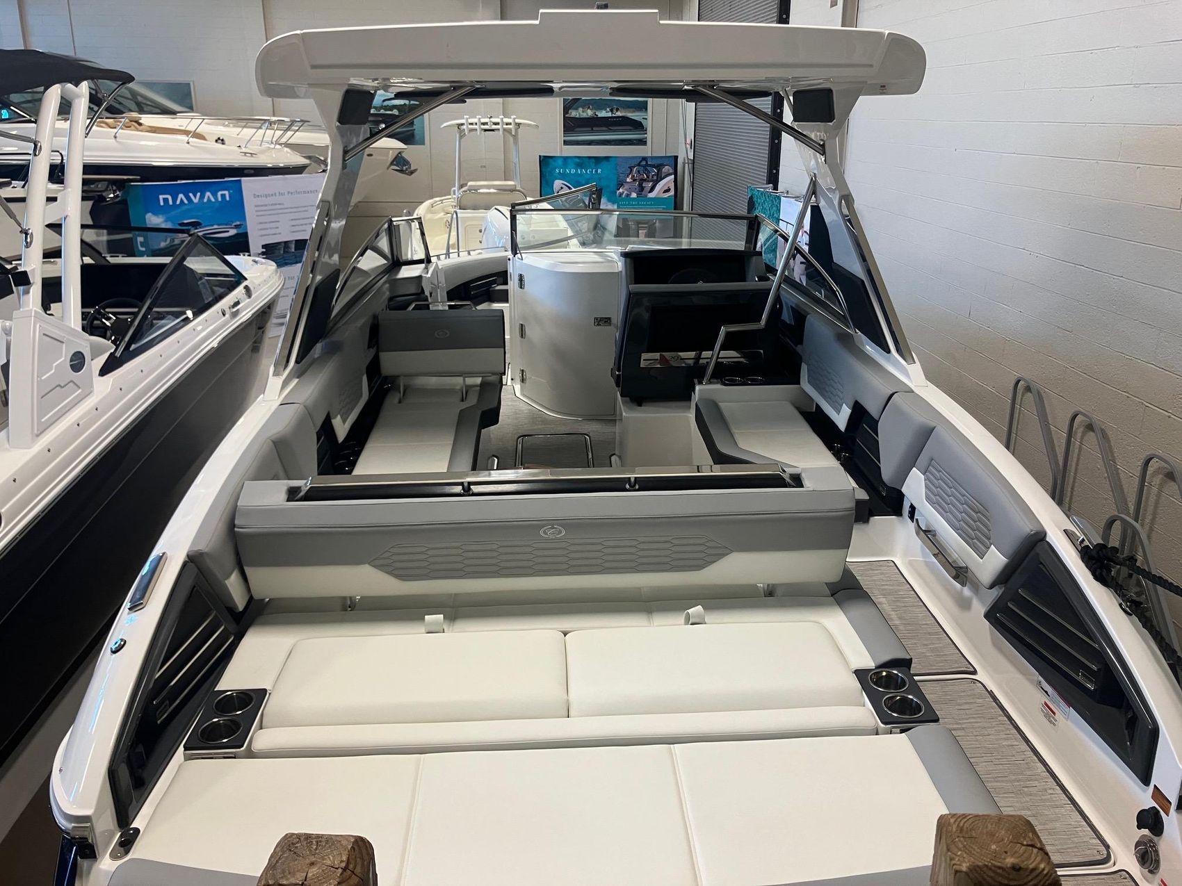The A29 delivers leading-edge innovations that take the A Series to another level. Experience the handling of this runabout’s rugged, handcrafted construction while enjoying the space, comfort, and style of a premium yacht. All in all, it delivers head-turning style on the water and a truly standout ride. The elegant A29 features a surprising range of amenities—including a dual Garmin Glass Cockpit touchscreen, a spacious day cabin with a portside walk thru, plus the fun and convenient Splash & Stow™ inflatables management system that makes every day on the water memorable.