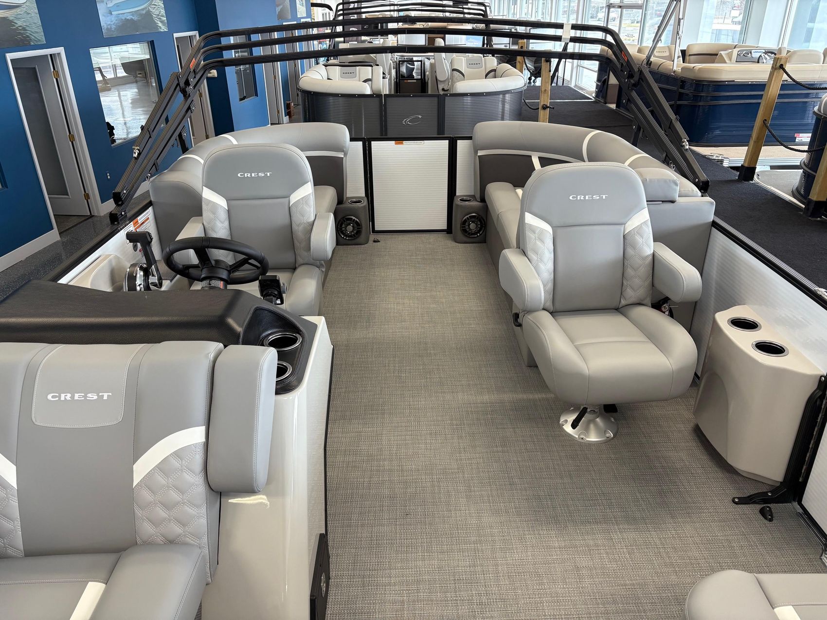 The Crest Marine 200SLC Classic LX pontoon boat is designed to offer both comfort and performance, making it an ideal choice for family outings and leisurely cruises. This model features spacious seating with L-shaped sun pads, dual captain’s chairs, and swing-back loungers, ensuring ample room for up to 10 passengers. Equipped with advanced marine technology at the helm, and a robust performance package with two large 25” diameter tubes, this pontoon boat provides a smooth and enjoyable ride for all.