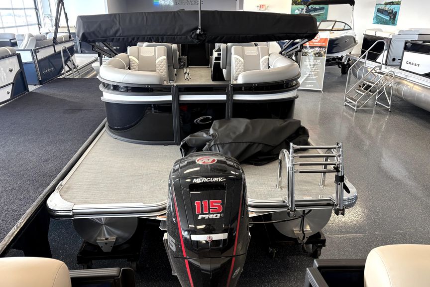 2025 Crest Pontoon powered by a 115HP Mercury Pro XS, built for smooth cruising and all day fun on the water. This twin tube setup delivers a stable, comfortable ride with plenty of performance to pull tubers or cruise with a full crew. Premium Crest fit and finish, spacious layout, and reliable Mercury power make this a perfect all around lake boat for families and entertaining. Turn key and ready for the season.