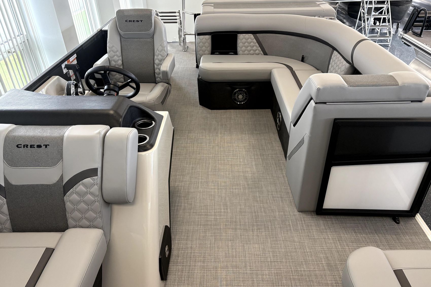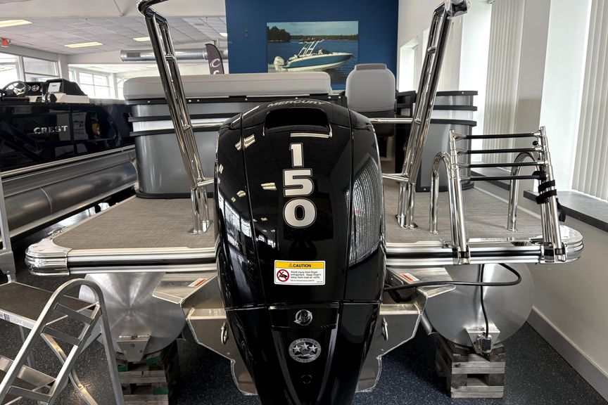 Additional highlights include a Bimini top for shade, stainless steel boarding ladder, mooring cover, LED lighting, and high-quality aluminum railings, ensuring durability and ease of use in all conditions. Crest’s reputation for solid construction and smooth ride quality makes the Conquest series one of the best values in the entry-level to mid-range pontoon market.