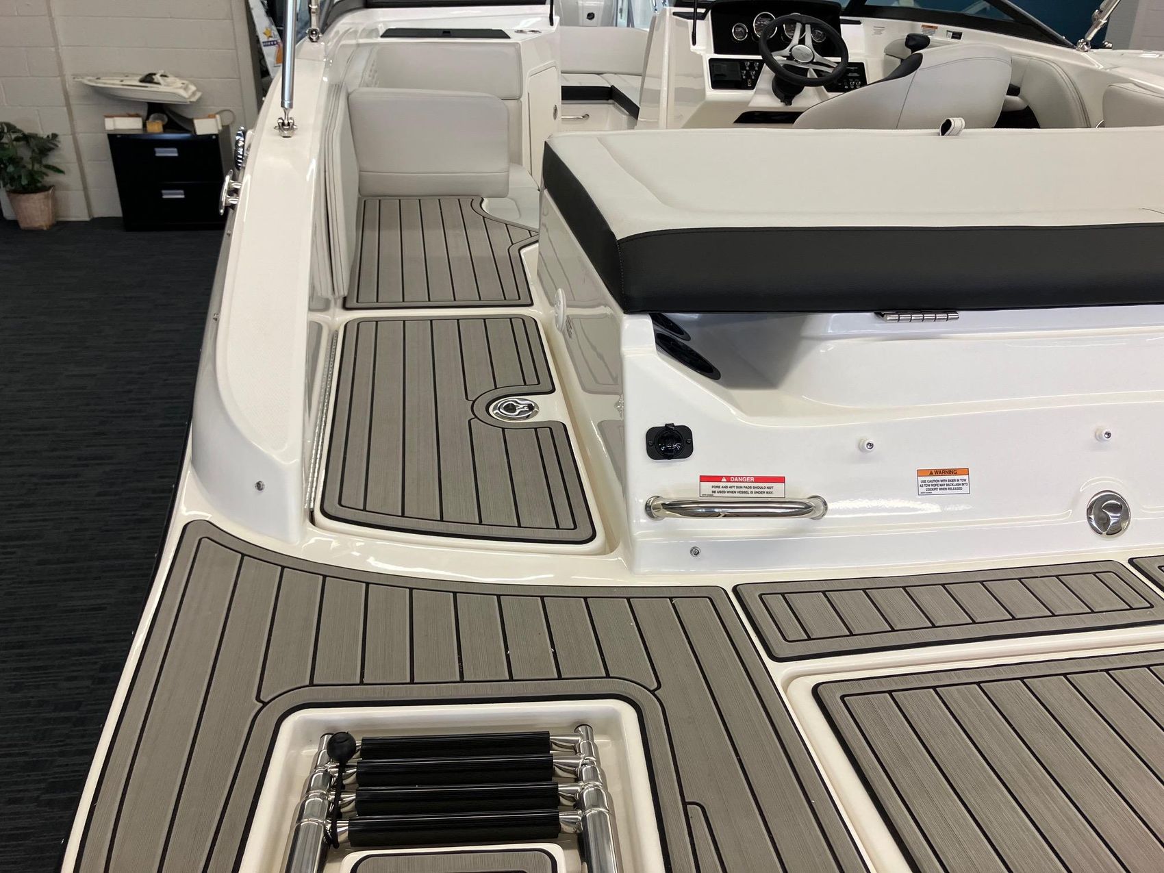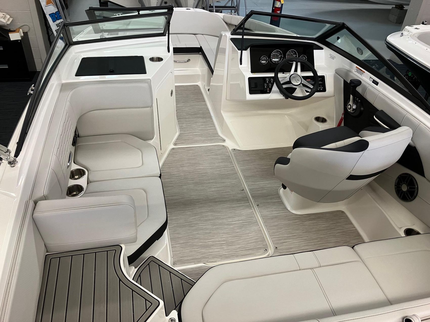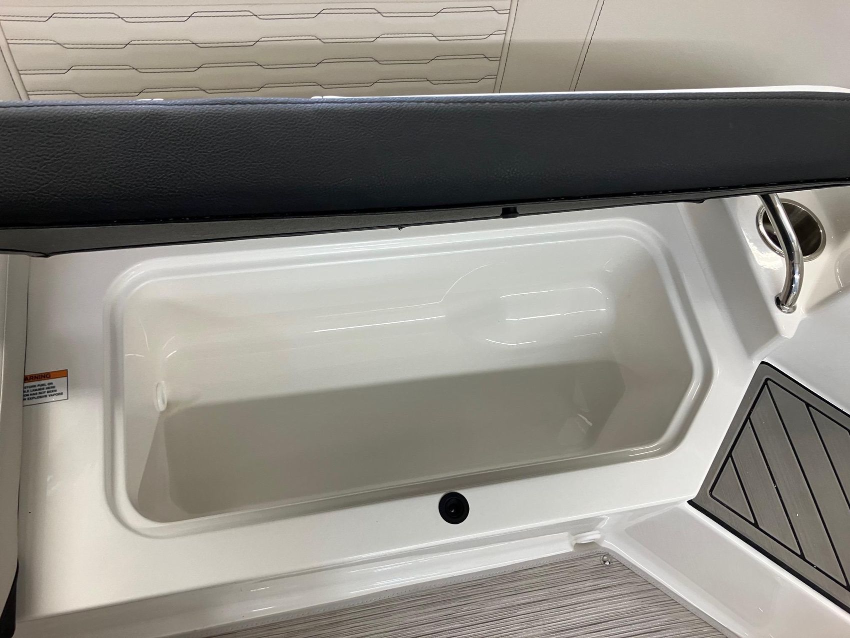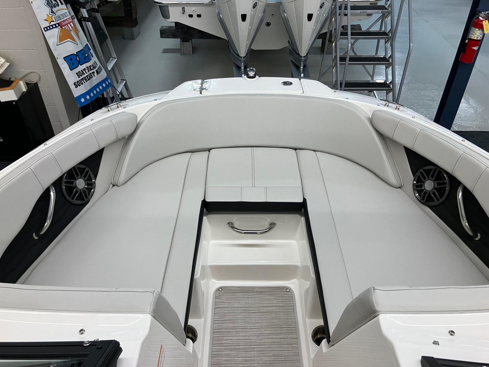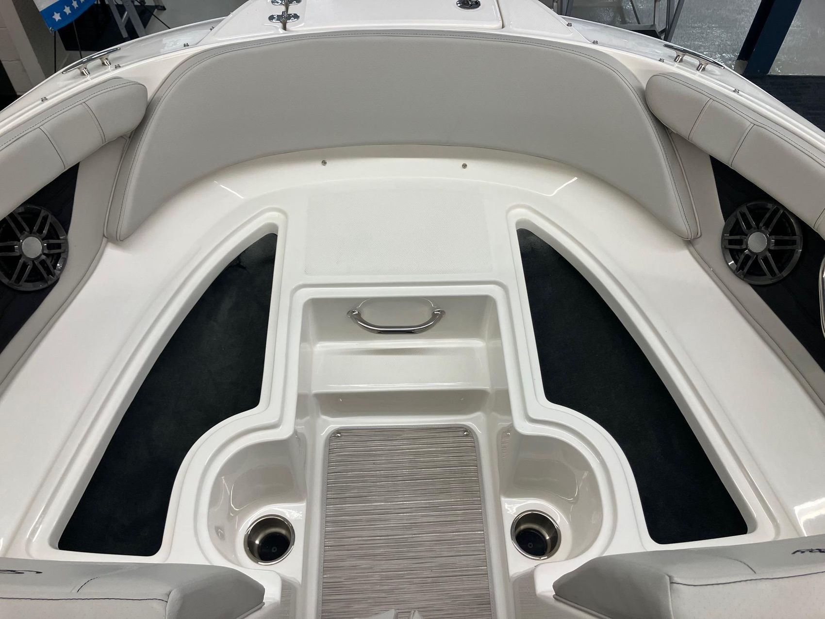 - Bow: Seats with Cushions & Storage Below, Port & Starboard Bolsters & Center Section Facing Aft • Cockpit: Aft Bench Seat with Sunpad & Insulated Cooler