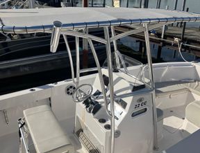 $597,900Drive Up2.08 ftLength Overall35.5 ftNominal Length35.5 ftEngine Horse Power900 hpDry Weight13,600 lbFuel Tank Capacity385|gallonWater Tank Capacity45|gallonBeam10.83 ftEngine Hours390Fuel Tank Count1Water Tank Count1Engine Count3Meet the bold 220 Dauntless, a center console boat that combines inshore fishing excellence with offshore cruising confidence. More than ... READ MORE