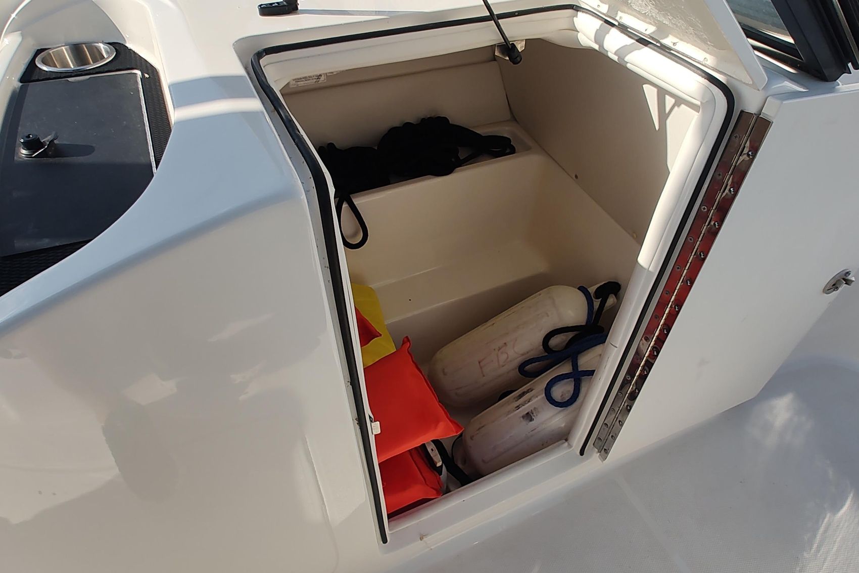 - Enclosed changing room with optional port potty provides convenience normally found on larger boats