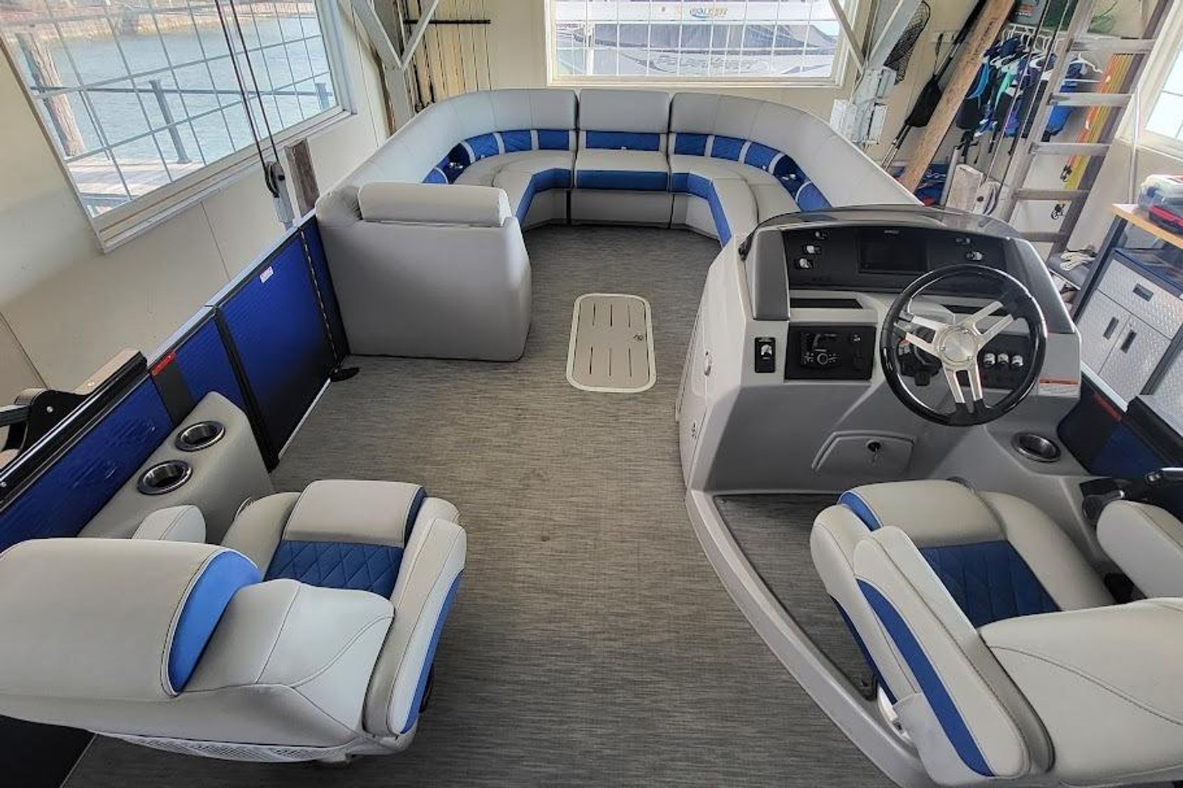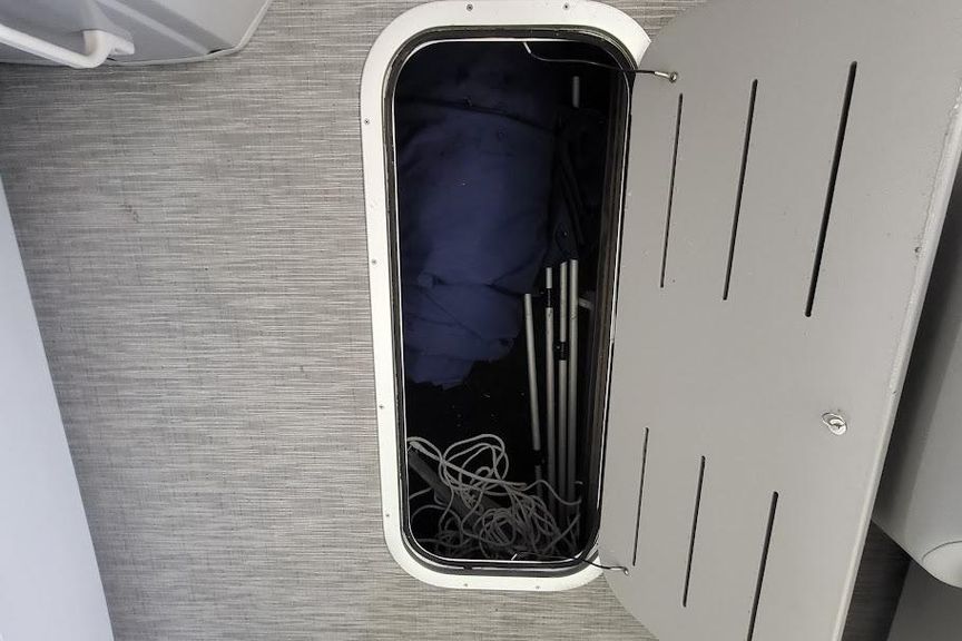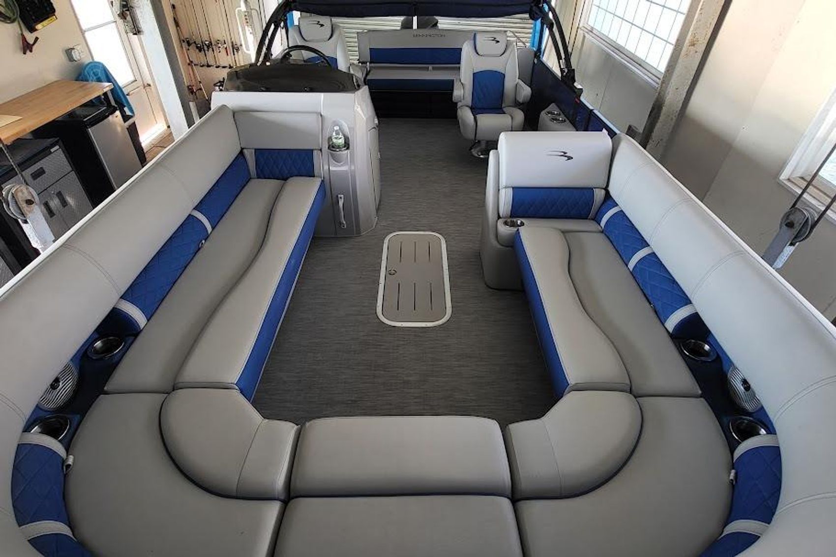 An innovative floor plan that enables dual seating capabilities in the stern by allowing users to face forward or backward depending on the position of the furniture back. Swingback floor plans feature the flexible swingback in the rear and benches up front.