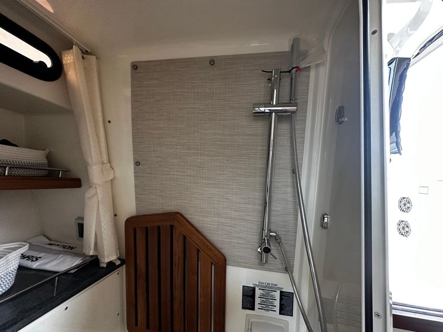 - Freshwater dive door shower with hot and cold mixer located in prep station