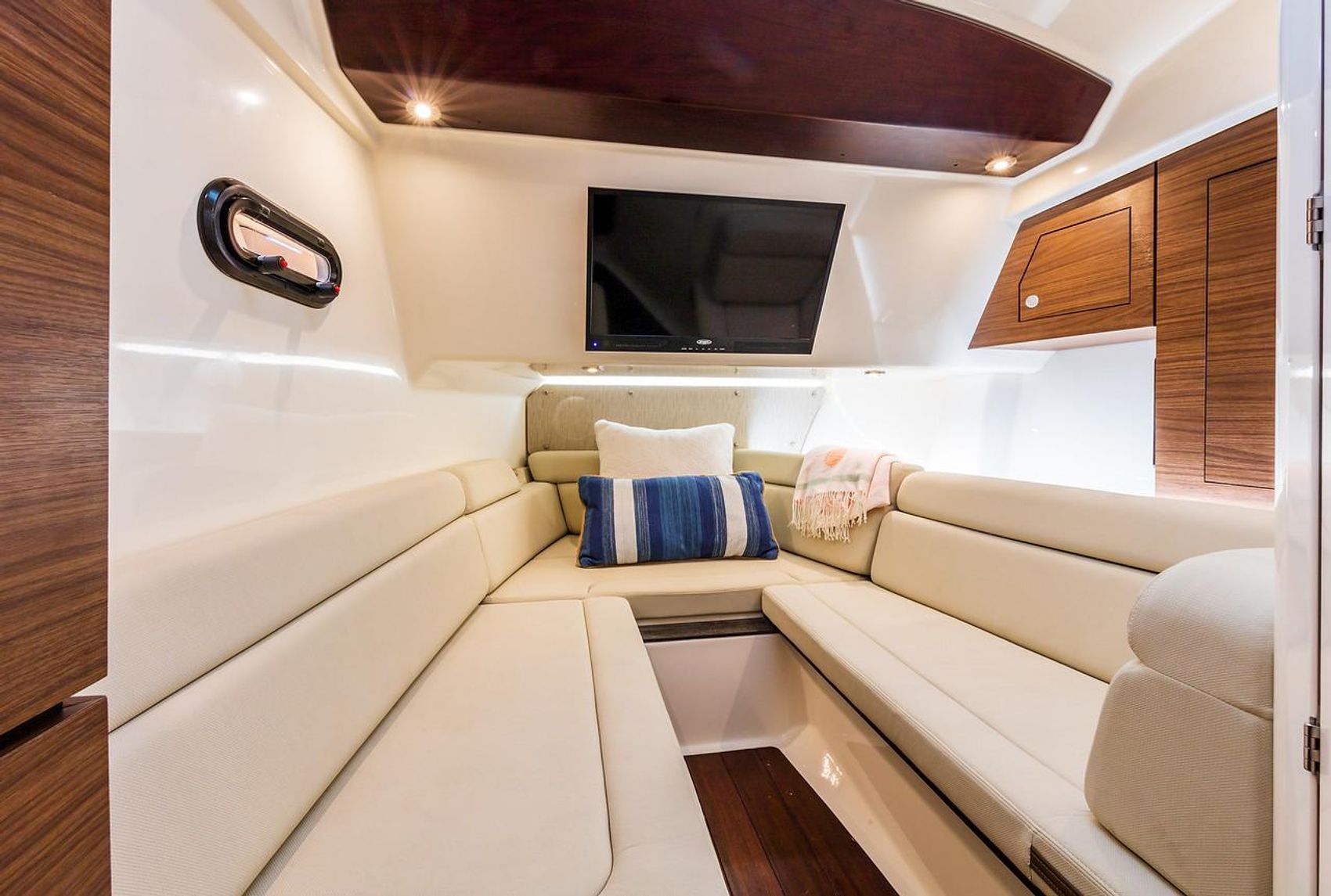 - Inviting cabin includes convertible V-berth/seating area and well-equipped head for comfort on long days and overnights.