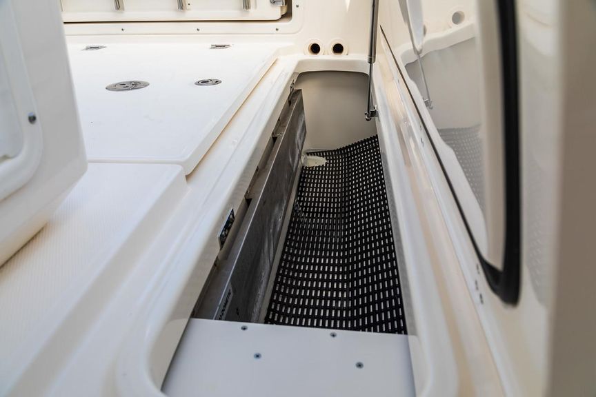 - Livewell – pressurized (15-gallon) with clear top window and blue interior (with red LED light) in aft port corner