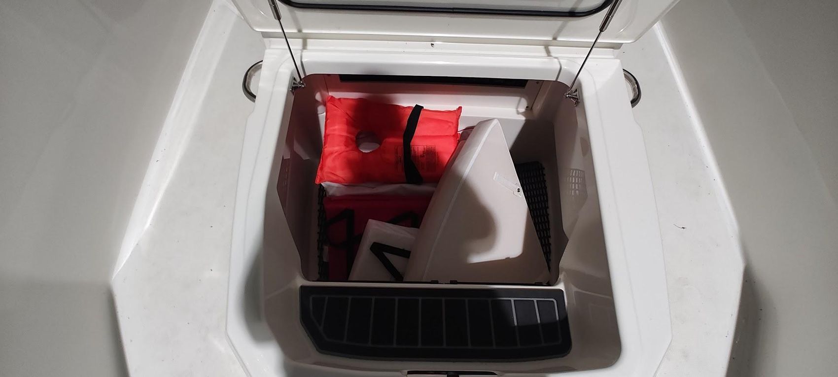 - Cooler / Storage in reversible pilot seat base