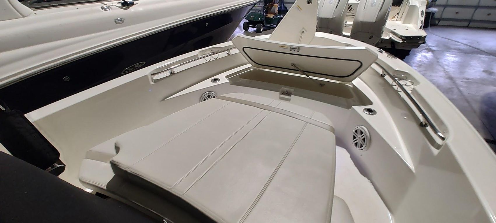 - Forward double lounge seat with large lockable storage and room for 7’ rods