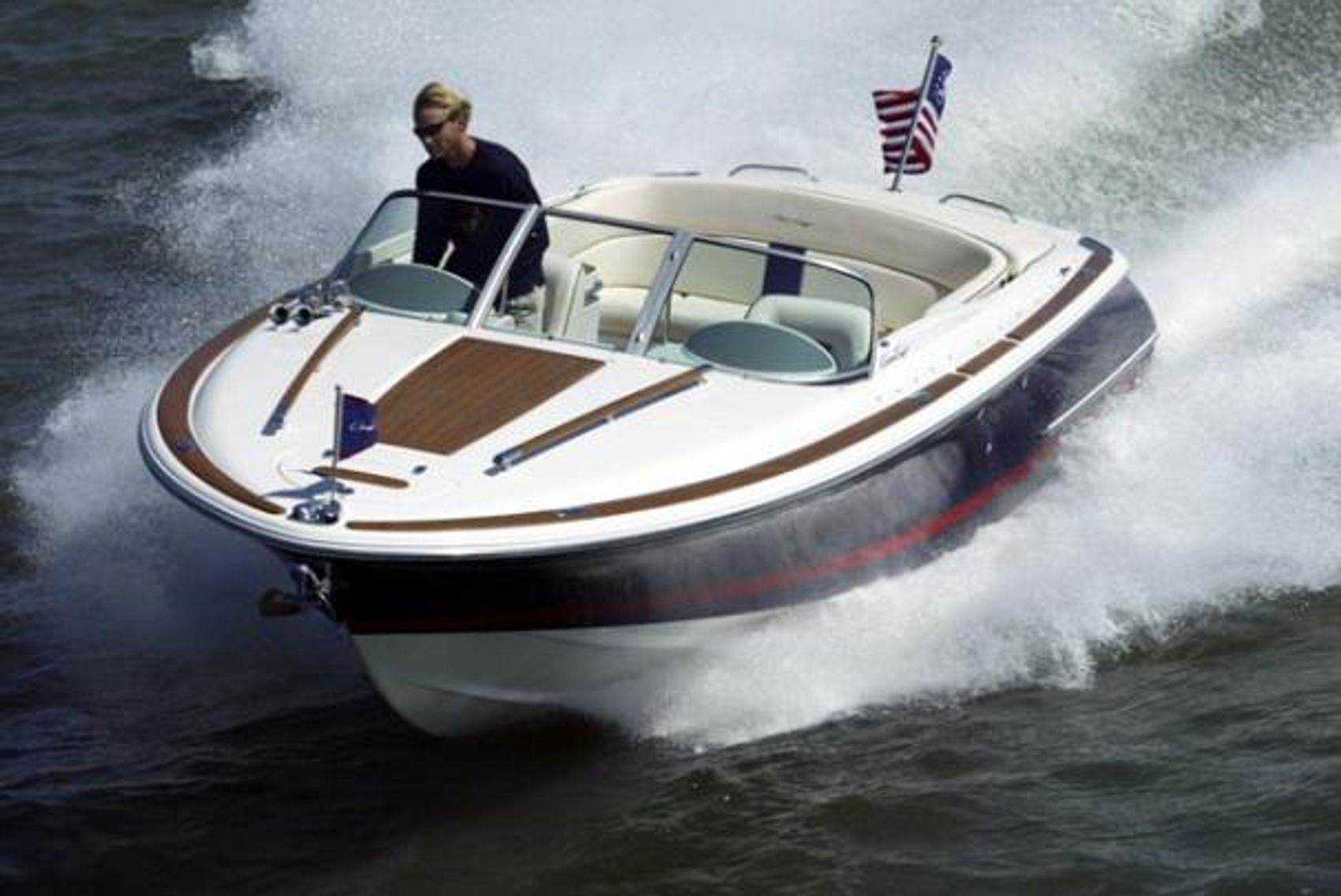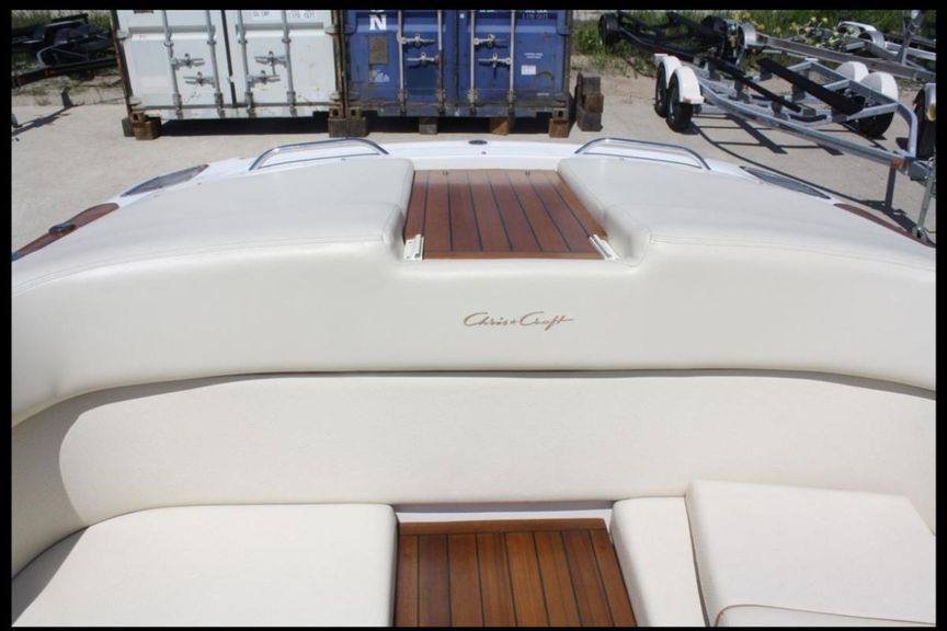 This 2007 Chris Craft 25 Corsair perfectly balances beauty, comfort and performance. The long, low, covered fore deck enhances the driver’s vision, while providing a spacious, bright berth tucked below. Within its deceptively trim shape, the Corsair easily accommodates 10 people for day trips or a couple for a weekend adventure. And with exhilarating horsepower, it arrives in sophisticated style – quickly.The Corsair 25 brings back the designs of the past. From the wide bow to the tumblehome aft, if you replaced the wood with fiberglass, it seems you have the hull design for today. Fresh water only, always winter stored indoors. Only 550 hours on her Volvo 8.1L with Duo-prop drive.
