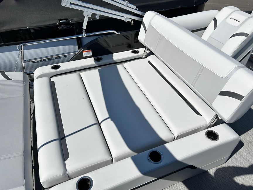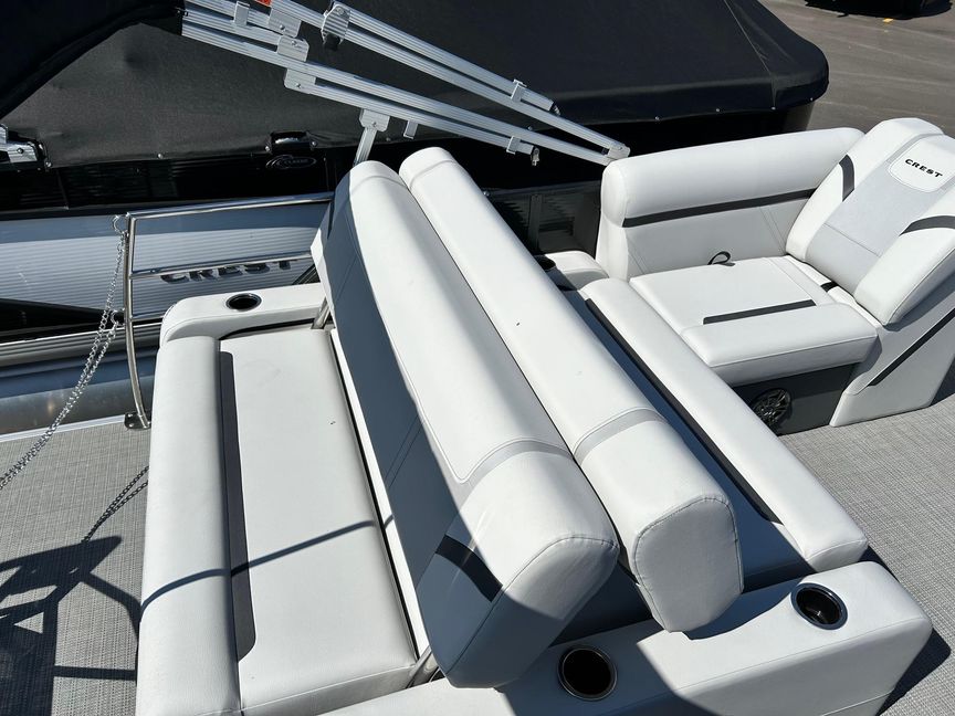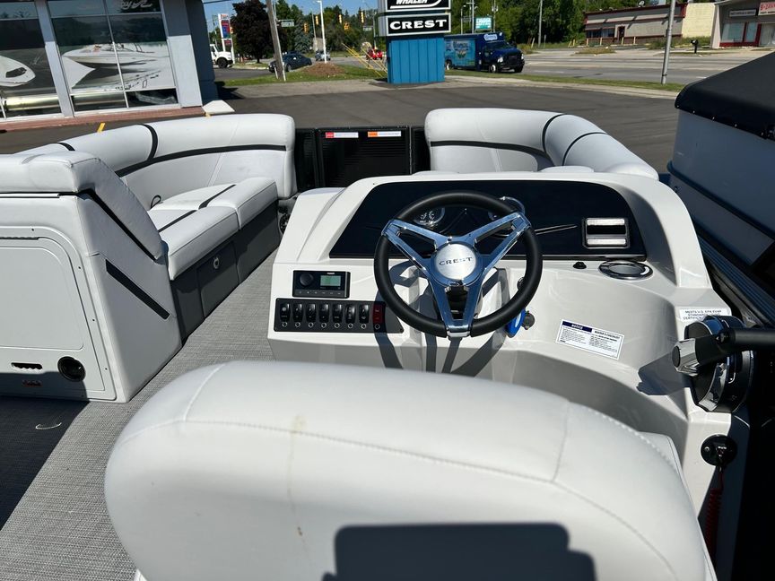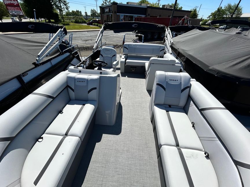 The Crest Marine Classic LX is a versatile and family-friendly pontoon boat that combines comfort and performance. This model is perfect for both fishing enthusiasts and leisurely cruising. The helm features convenient USB phone chargers, and this floor plan offers optimal space for entertaining including a reclining sun lounge and plenty of bench style seating for ultimate comfort for everyone. The 220 Classic LX is designed to exceed even the highest of expectations!