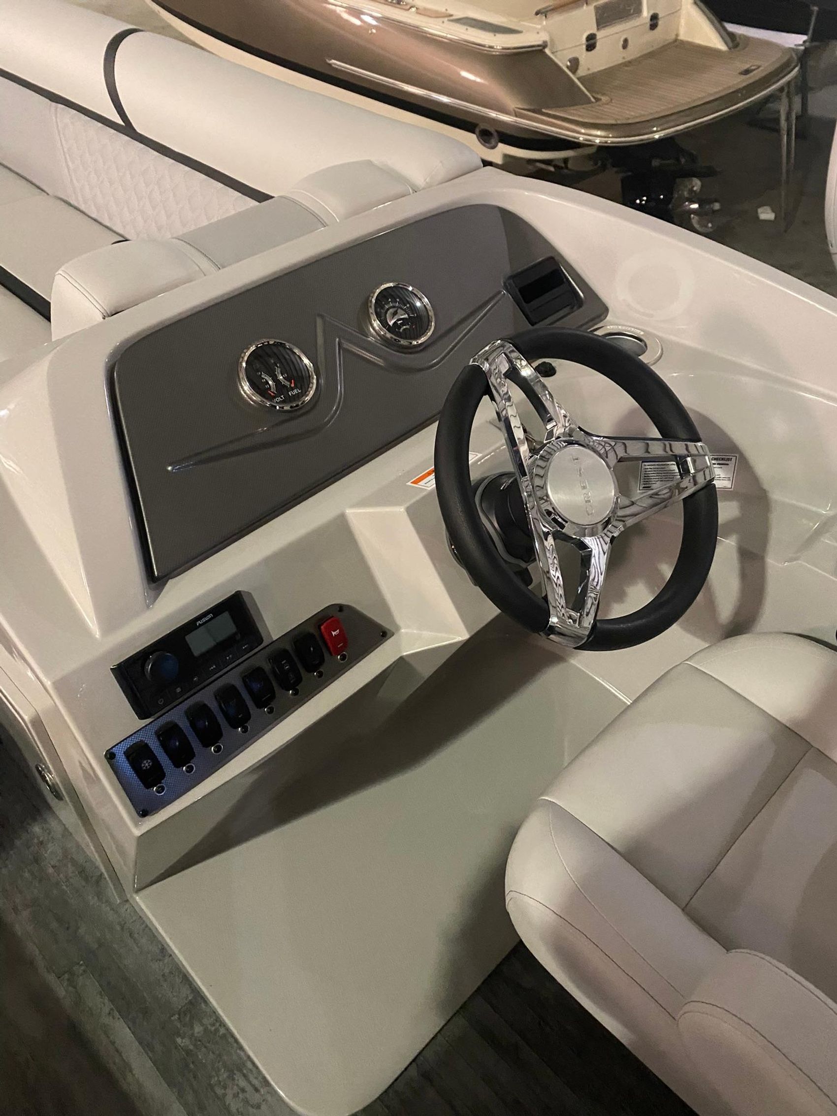 With deluxe features and upgrades, the SLC Classic DLX has what you need for all-day adventures or simply enjoying the moment. Enjoy the soft, insulated cooler located in the bow cooler drawer that can be loaded on and off the boat to pack your favorite snacks and drinks. Keep the party going and never run out of battery with a wireless charging station at the helm. The wrap around design along with helm trims on our Classic DLX will have you cruising in style. Cruise, sit back and crank the music – we’ll handle the rest.