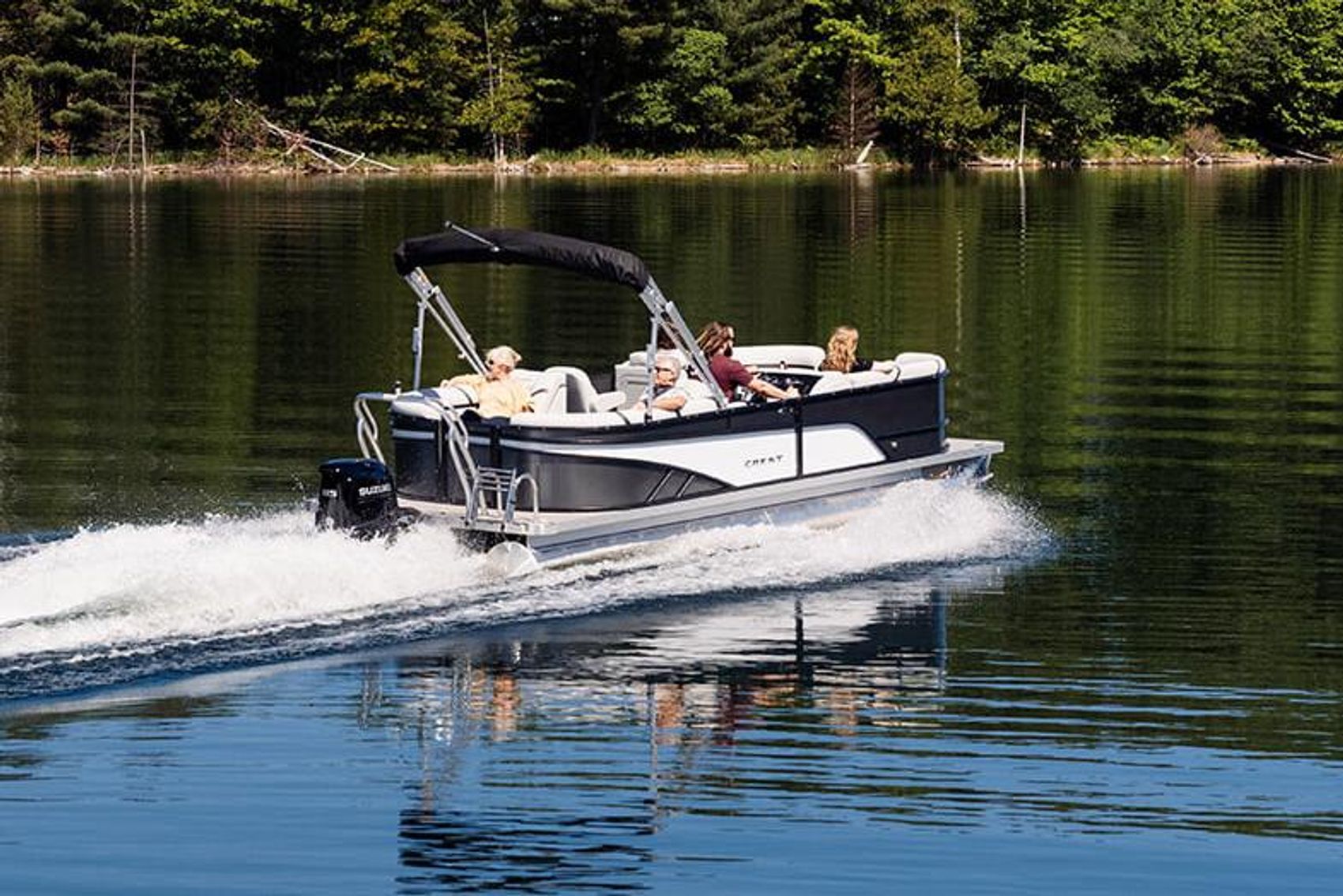 Comfort and performance are at the forefront of features onboard the best-value pontoon in our lineup. Choose the Fish Package to hook huge bass and enjoy a fish helm for captain’s comfort. USB phone chargers are located throughout so your whole crew can stay connected. Choose from a multitude of floor plans that offer luxurious comfort and optimal space with L-shaped sun pads, dual captain’s chairs, and swing back loungers. Fish, swim, relax, eat and drink, party, lounge and enjoy the days you deserve the most on the Classic LX.