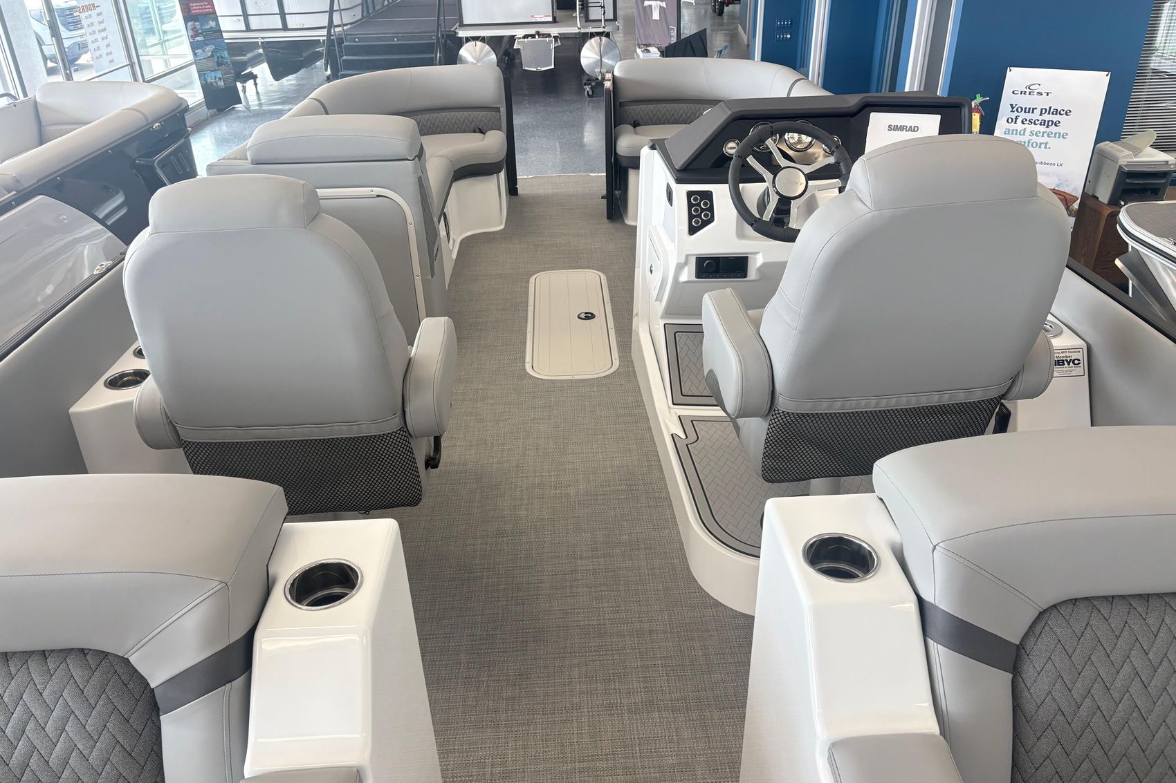 DisclaimerExperience the perfect blend of performance, comfort, and craftsmanship with this Crest pontoon—built for unforgettable days on the water. Designed with durability at its core, Crest pontoons feature fully welded aluminum construction and a robust chassis system, delivering a smooth, quiet ride even in choppier conditions.