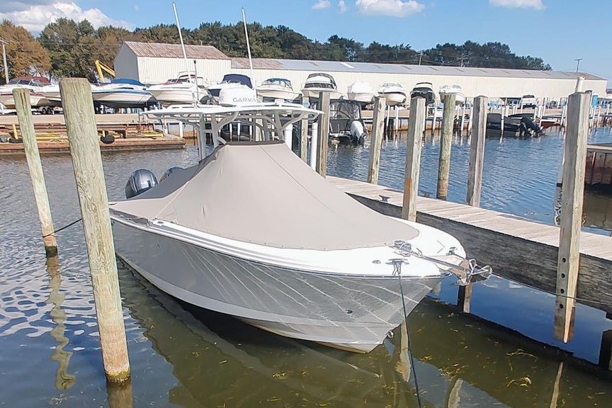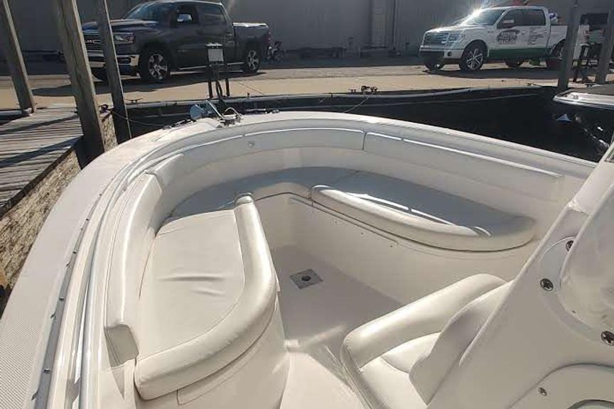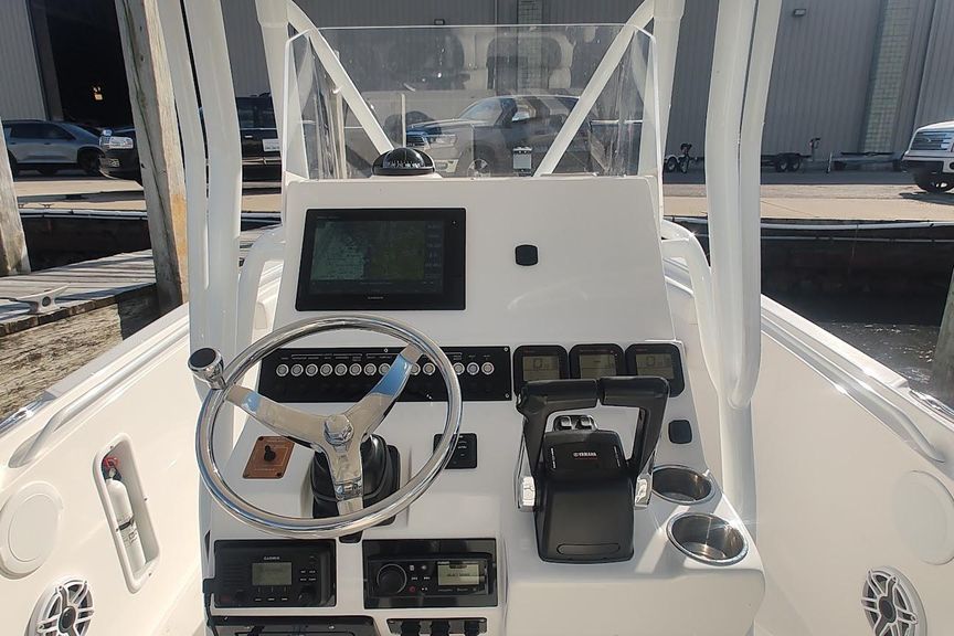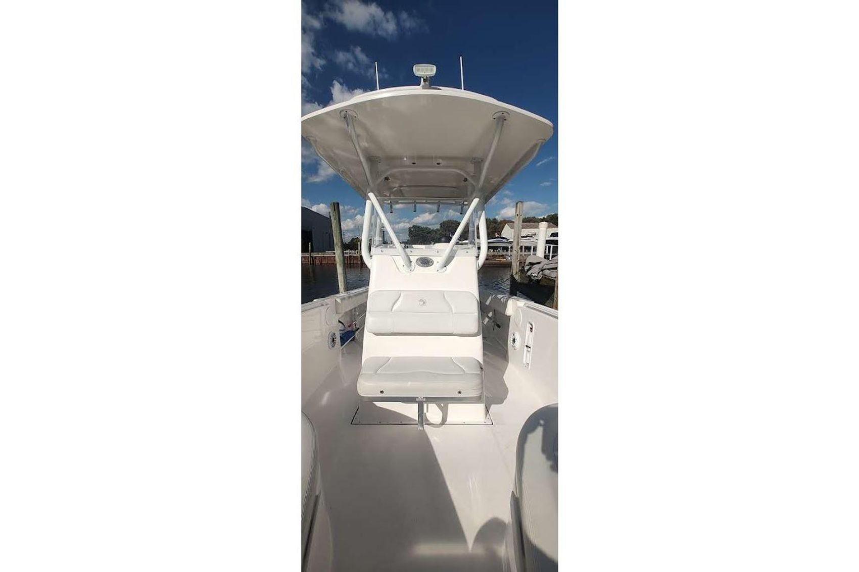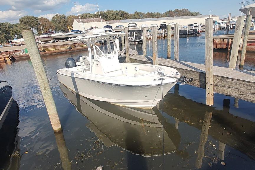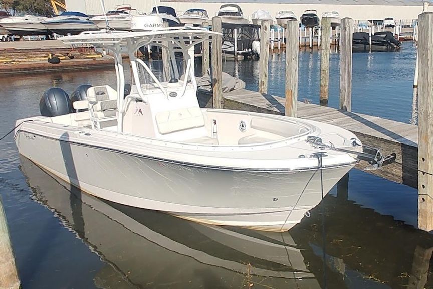Located at our harbor now for showings ,Powered with the optional twin 150 Yamaha’s,  this is a must see if you are in the market for a  23-27 ft trailer-able upper end Center Council , options include fiberglass T-Top with custom canvas , Garmin Plotter / Fish-finder /Radar / Autopilot , Windlass , enclosed head with pump-out and matching trailer ..Priced aggressively for quick sale .