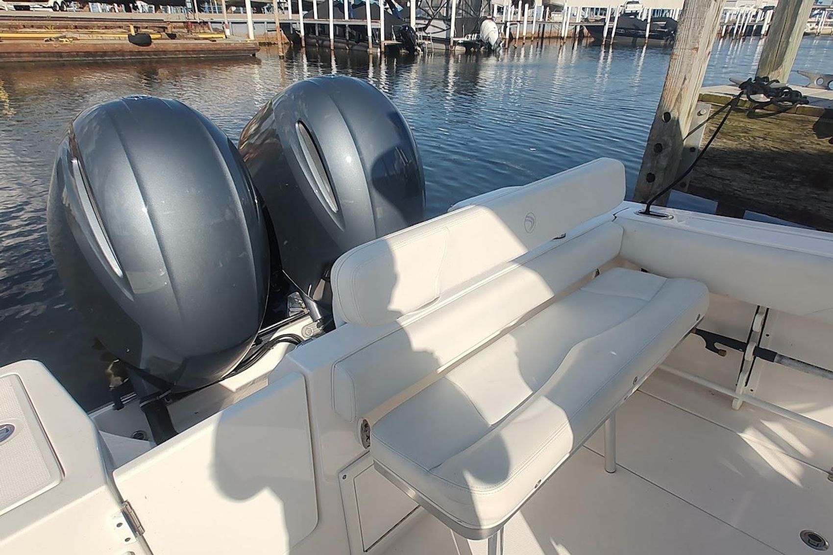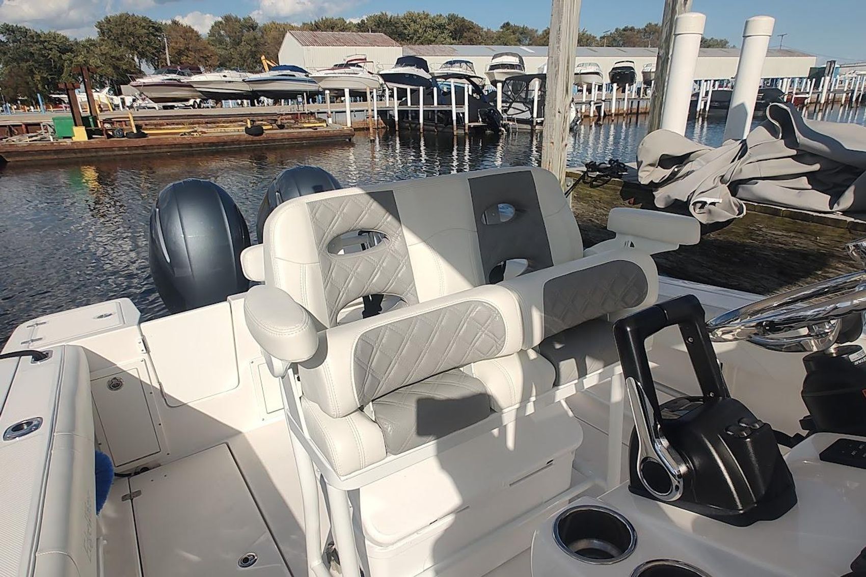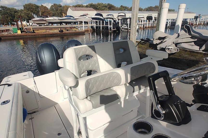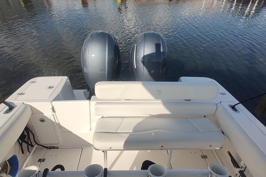 Located at our harbor now for showings ,Powered with the optional twin 150 Yamaha’s,  this is a must see if you are in the market for a  23-27 ft trailer-able upper end Center Council , options include fiberglass T-Top with custom canvas , Garmin Plotter / Fish-finder /Radar / Autopilot , Windlass , enclosed head with pump-out and matching trailer ..Priced aggressively for quick sale .