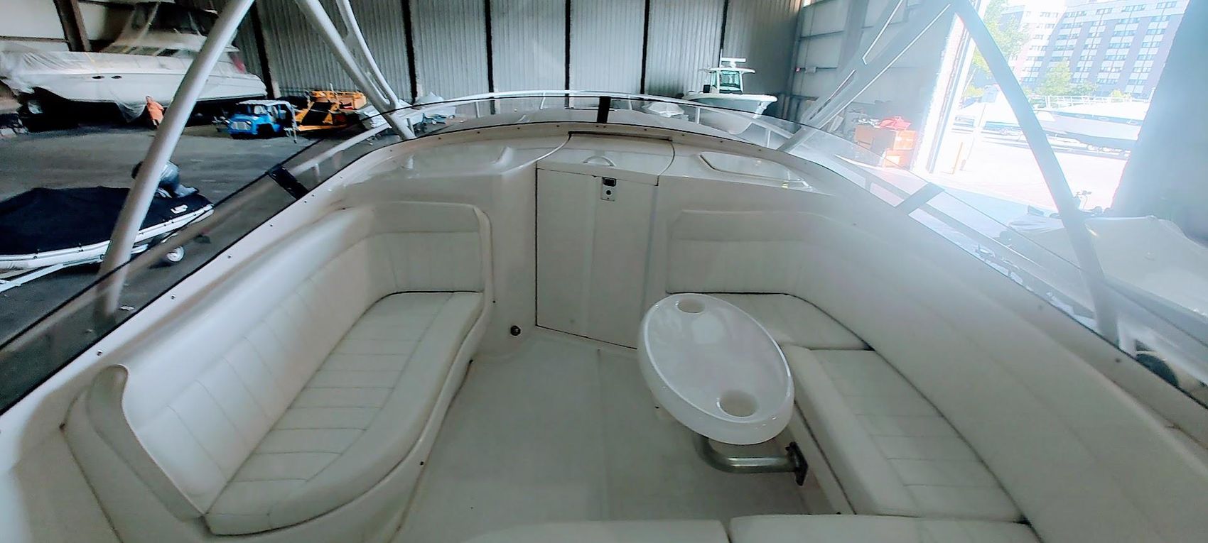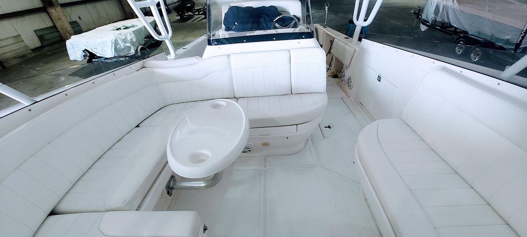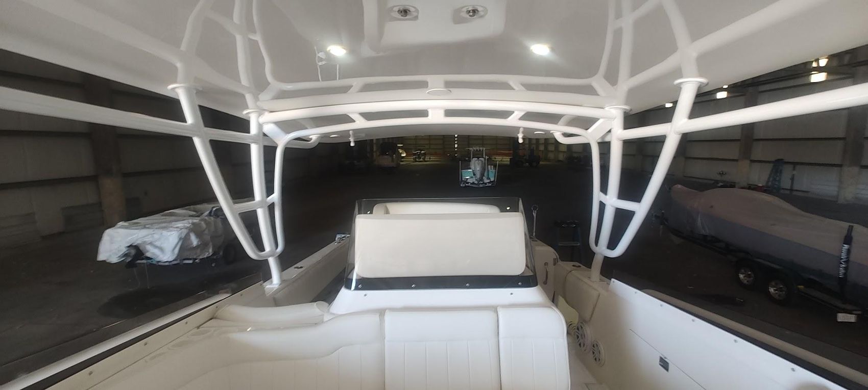 In the water and ready to go..Powered with the upgraded and optional triple F-350’s Yamaha’s , Bow Thruster , Full hardtop with seat covers , Radar , plotter and fish-finder ..