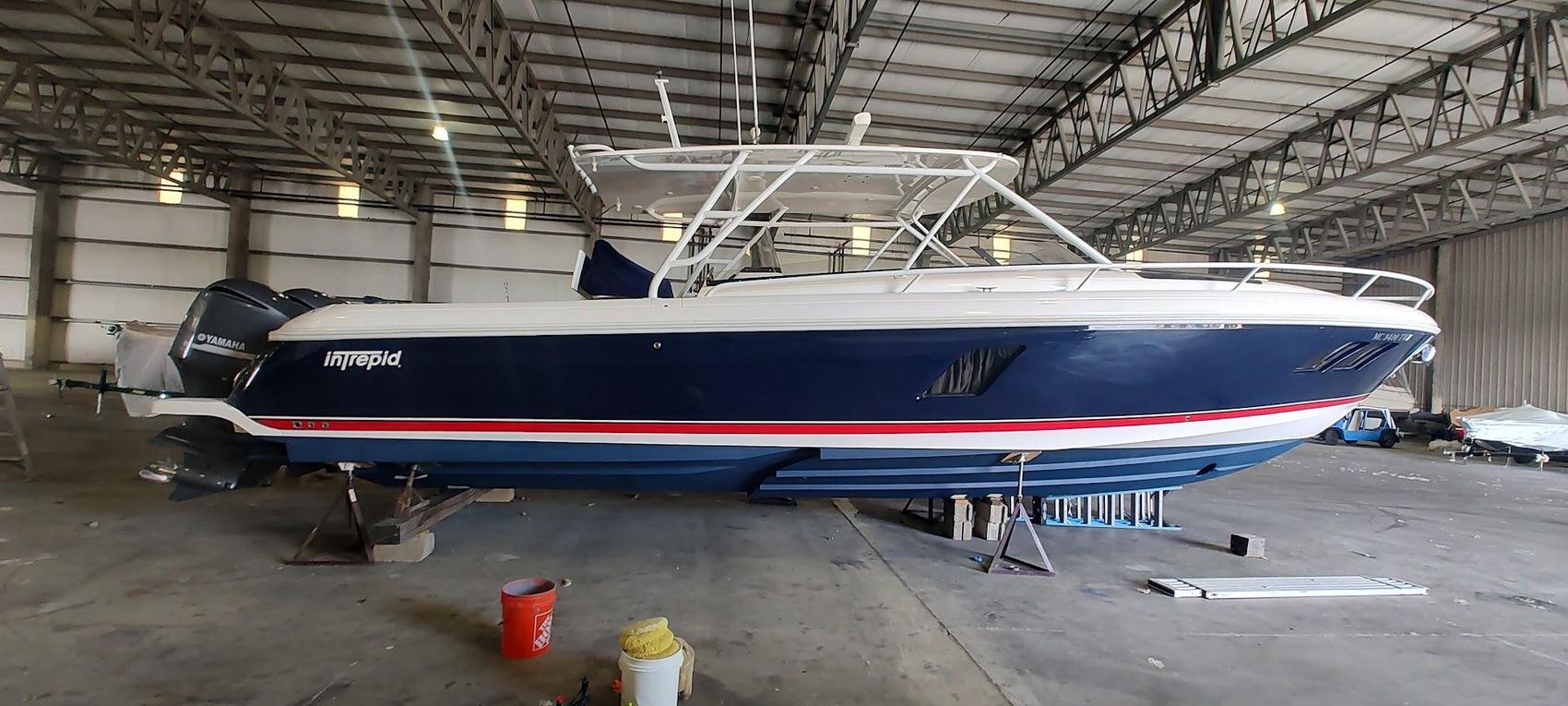 As with every Intrepid, the most advanced design, technology and fabrication techniques deliver an incomparably smooth, dry ride with unparalleled performance. The ultimate blend of comfort and power has come together to create one of the most innovative boats on the water today. Whether fishing, diving or entertaining, this Intrepid is packed with thoughtful design features that will maximize enjoyment for anyone and everyone: a hullside dive door with step ladder and grab rails for divers and swimmers, custom seating and wet bar for easy entertaining, baitwells, rod holders, tank storage, tackle boxes, raw water washdown and more storage everywhere for the serious sport fisherman, customized the Intrepid way to suit your personal style.