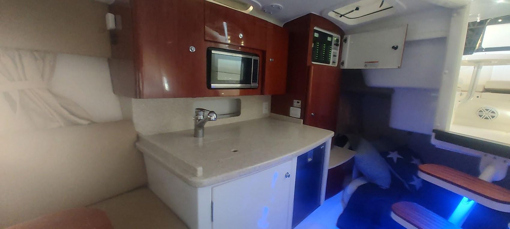 - Galley with Corian counter top/recessed SS sink & pressure water