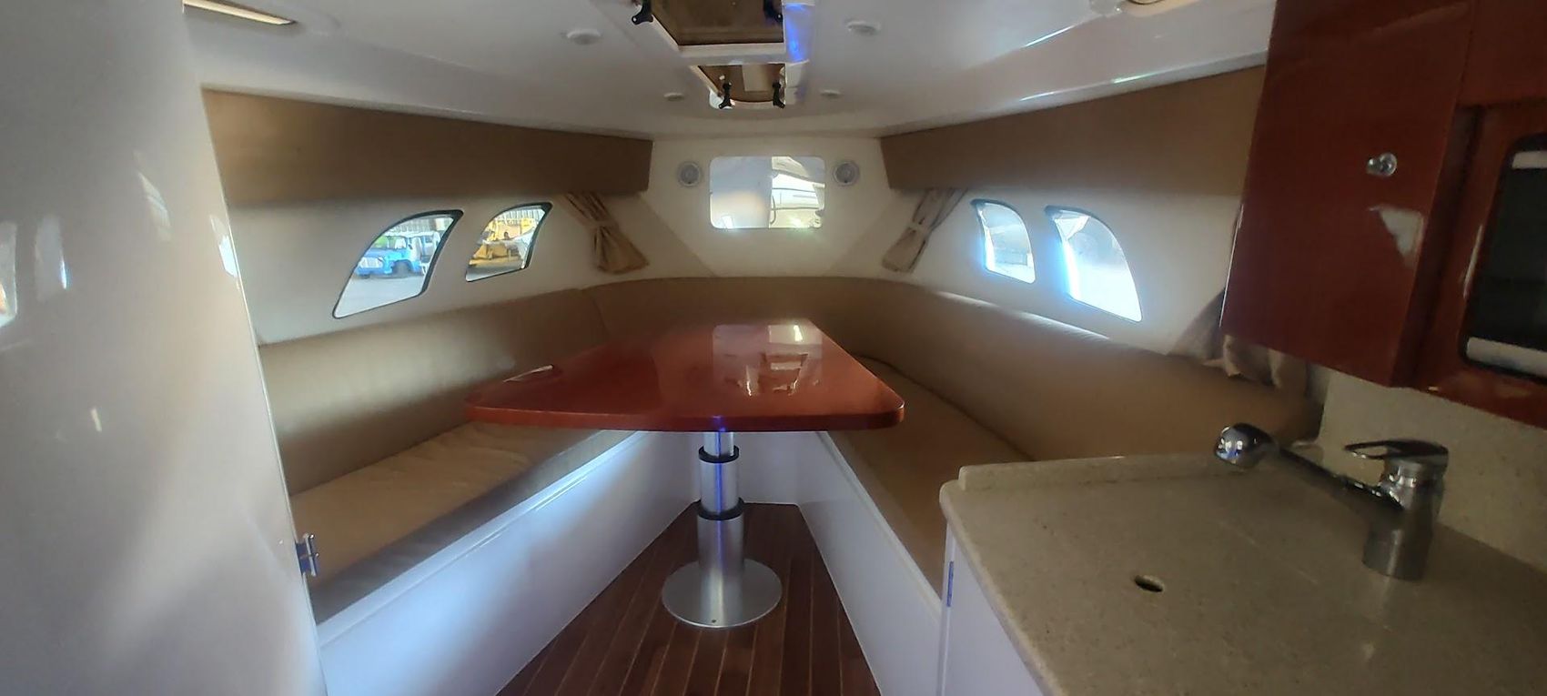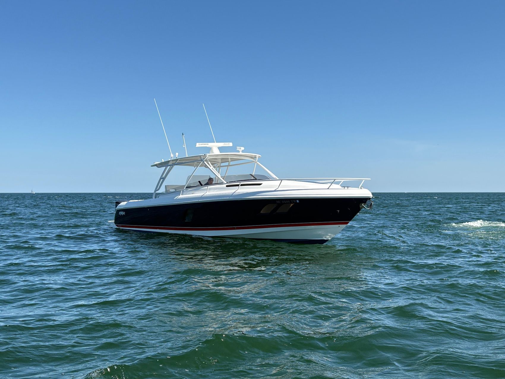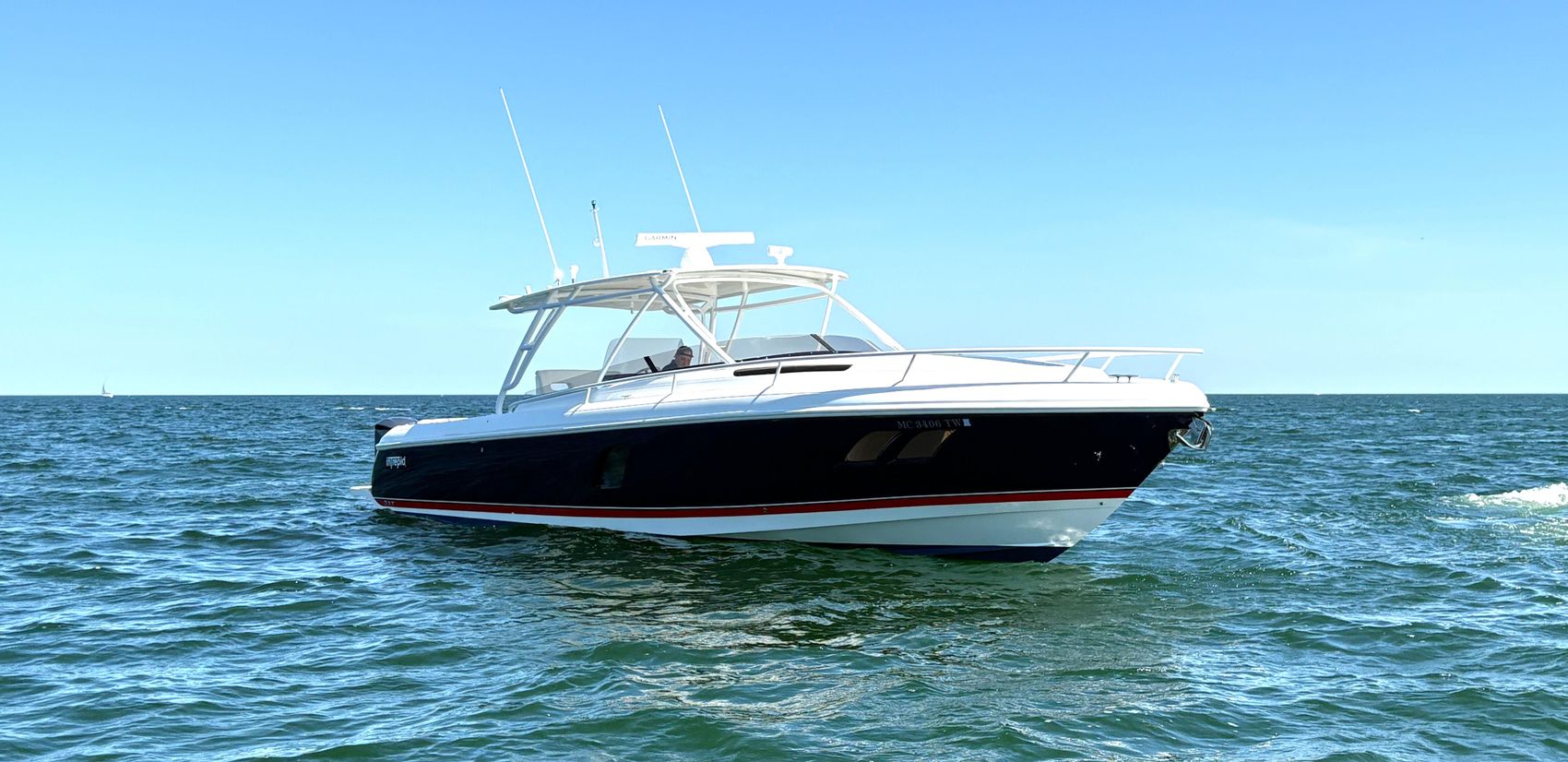 This sleek 40-foot cuddy offers all the enhanced accommodations you would expect in a luxury performance cruiser, including a private bath with shower stall and separate master berth with queen bed and hullside windows. It also features a forward cabin section that easily converts to a large double berth.