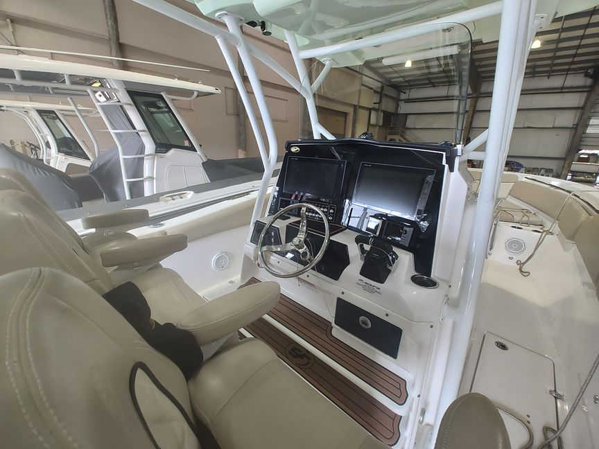 Introducing the 2017 Sea Fox 328 Commander, a remarkable center console boat that combines performance and style. With an overall length of 33 feet, this vessel features a robust fiberglass hull designed in a deep Vee shape, ensuring stability and a smooth ride even in choppy waters. Powered by twin Yamaha 350 hp outboard engines, this boat delivers impressive power and reliability, with only 635 hours of use. The electric windlass adds convenience, making anchoring effortless. Designed for comfort, the Sea Fox 328 Commander includes a well-appointed head, enhancing the onboard experience. Its thoughtful layout and features make it an ideal choice for both leisurely cruises and adventurous outings. Whether you’re fishing, entertaining, or simply enjoying a day on the water, this boat promises to elevate your maritime adventures with its blend of functionality and elegance.