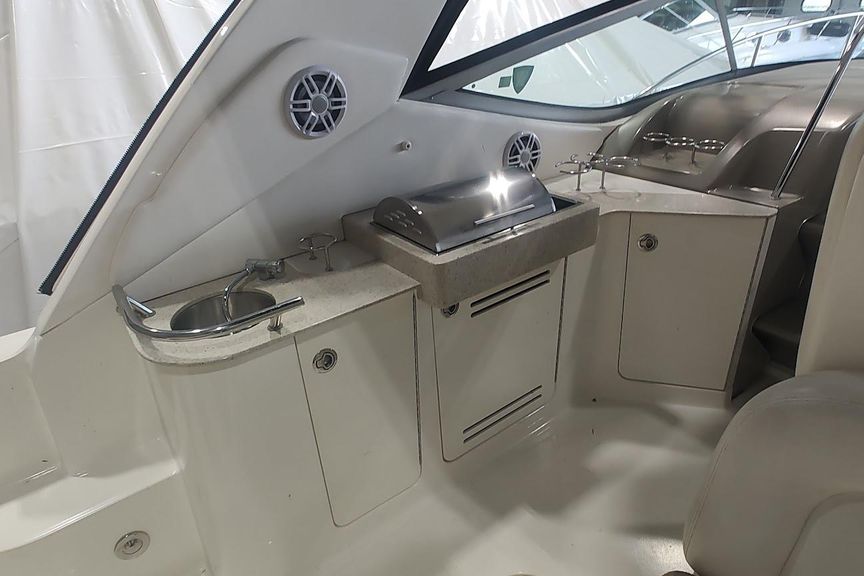 - Extra-large cockpit wet bar with solid-surface countertop can also accommodate optional built-in grill and refrigerator.