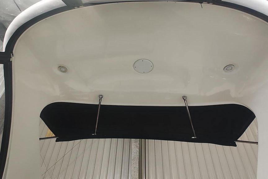 - Innovative fiberglass arch top with aft sunshade.