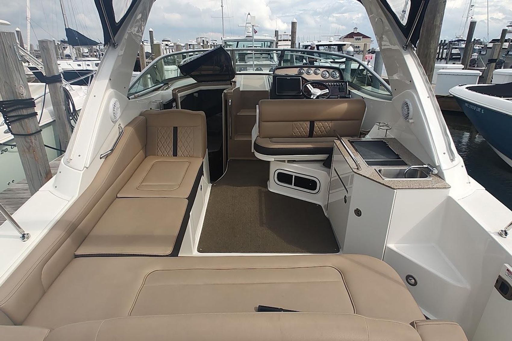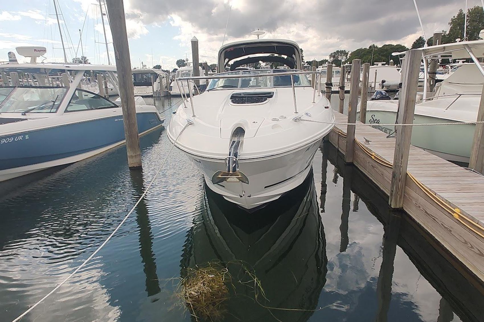 This is a awesome family boat , hard to find mid-size Sea Ray cruiser that can sleep 4 comfortably overnight , always freshwater and less than 150 original hours on her upgraded optional twin 6.2 ECT Bravo 3 Mercruisers , options include full like new canvas package (camper and cockpit cover) , Mocha cockpit interior , Cockpit grill and fridge , Extended platform, air & heat , chart plotter with smart craft..
