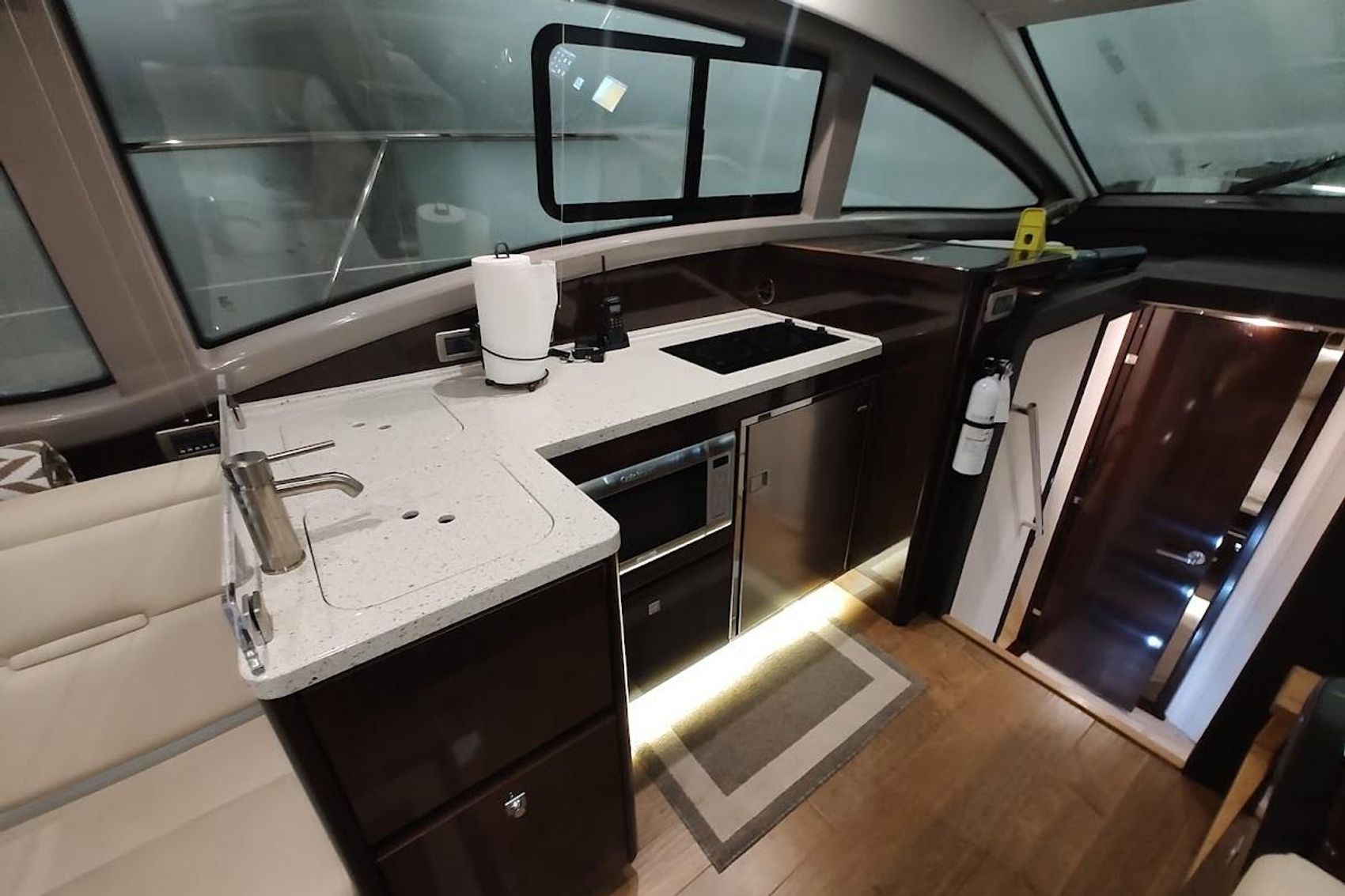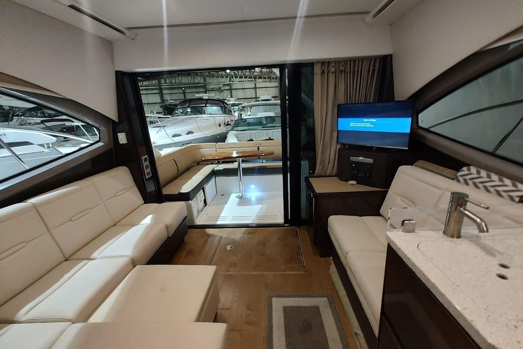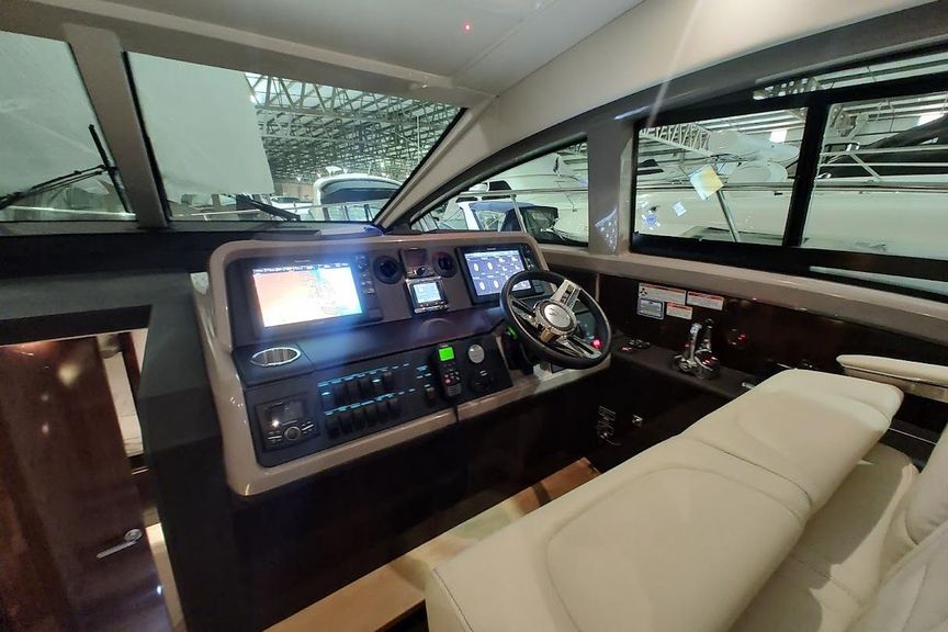 Pristine 2017 Sea Ray 400 Sundancer now available for sale. This freshwater-only vessel features twin Cummins 6.7L QSB Inboard diesel engines with the optional joystick docking and less than 120 original hours .