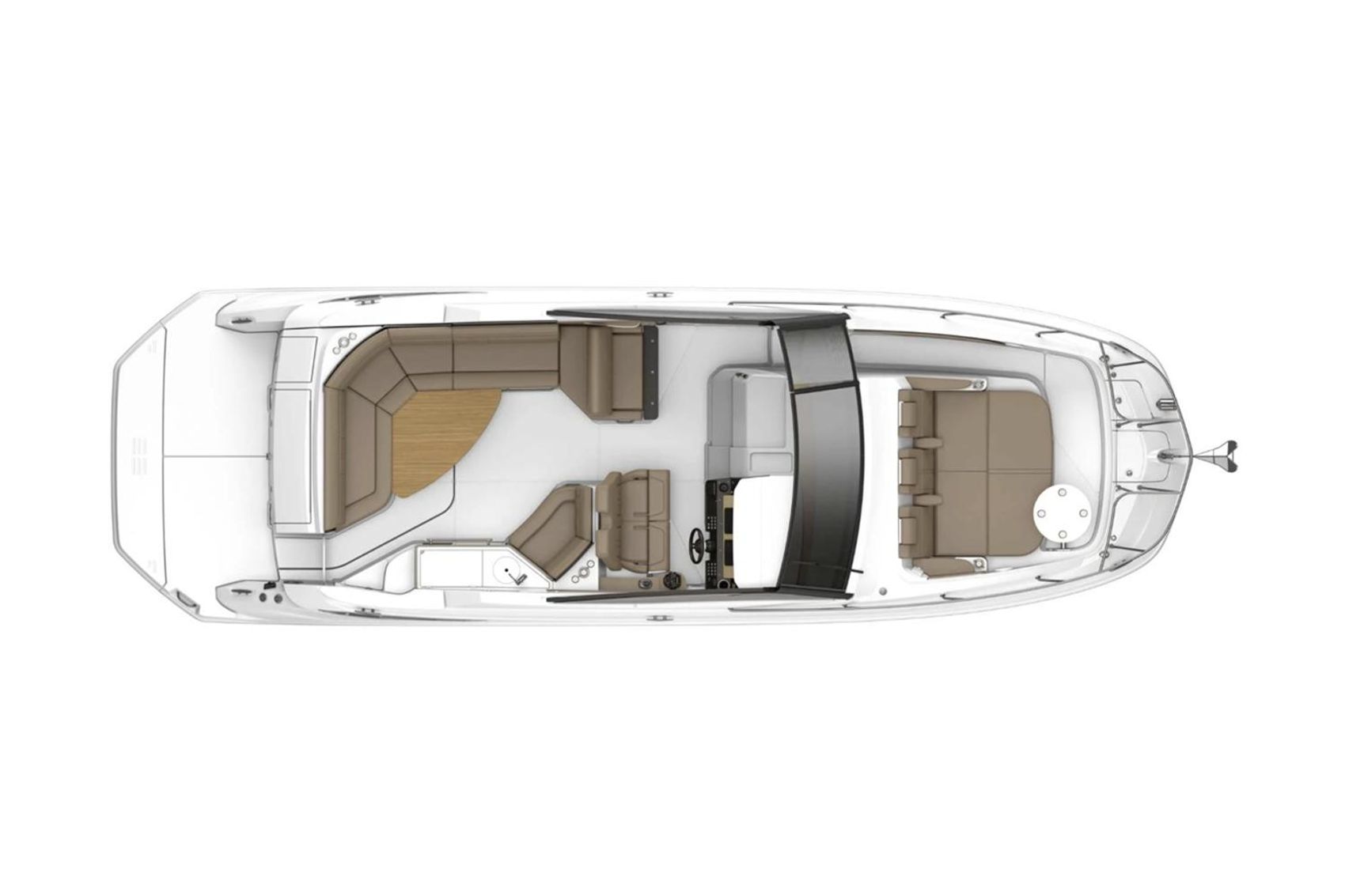 Cockpit social area with opposing seating & storage