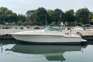 Introducing the 1992 Tiara Yachts 4300 Open, a stunning cruiser that embodies elegance and performance. With an overall length of 43.17 feet, this vessel is crafted from durable fiberglass, ensuring both strength and a smooth ride. Powered by twin DETROIT DIESEL 6V92 TA engines, each delivering an impressive 550 horsepower, it promises exhilarating performance on the water with 1575 hours of reliable operation. Equipped with a custom top, this boat enhances convenience while anchoring, making your outings more enjoyable. The design emphasizes both functionality and comfort, making it an ideal choice for cruising enthusiasts. The Tiara Yachts 4300 Open is perfect for those seeking adventure on the water, combining classic styling with modern features. Experience the thrill of the open sea with this exceptional vessel, ready to create unforgettable memories.