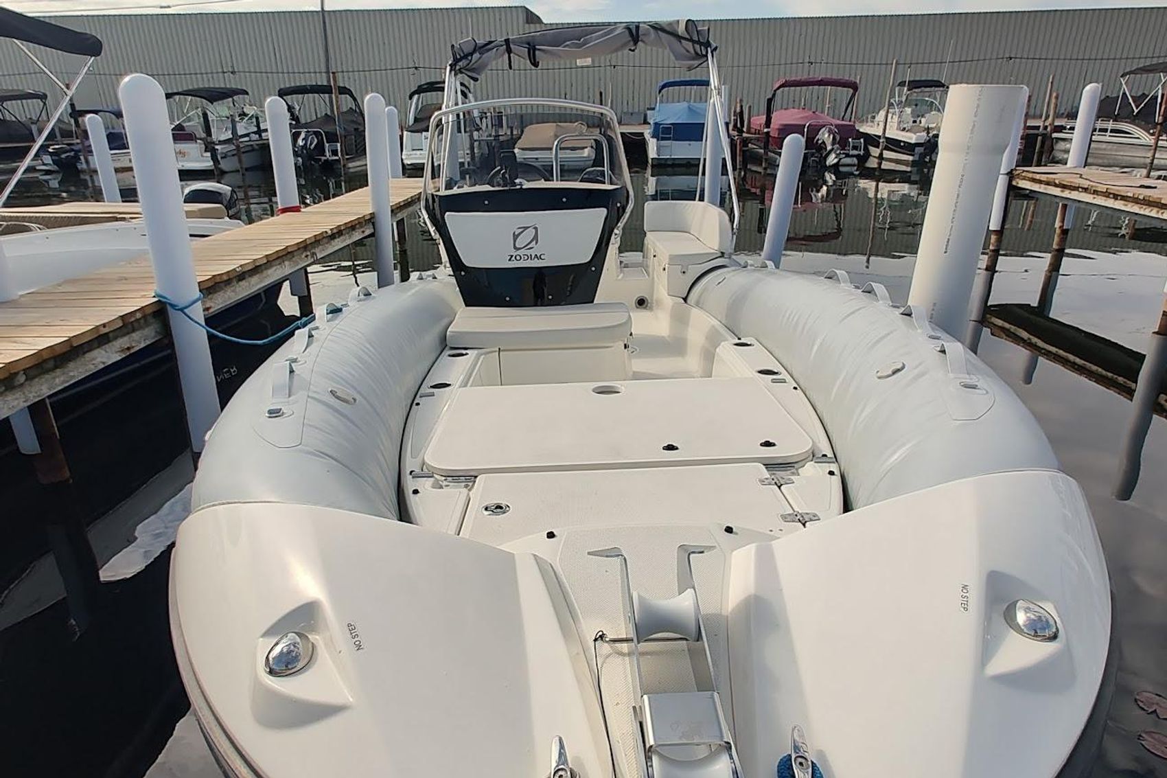 The exclusive N-ZO line is fortified with the latest in Zodiac Nautic technology, which is designed to provide you with the safest and smoothest on-the-water experience possible. The deep V-hull, enhanced with our exclusive Zodiac Nautic Shell technology, provides unmatched sea-handling capabilities. Our deck-layout was designed with passengers’ comfort and safety in mind, offering safe on-board mobility to passengers while docked or moving. To ensure maximum comfort and spaciousness, we developed the new “Air Console”, minimizing space and maximizing interior capacity.’